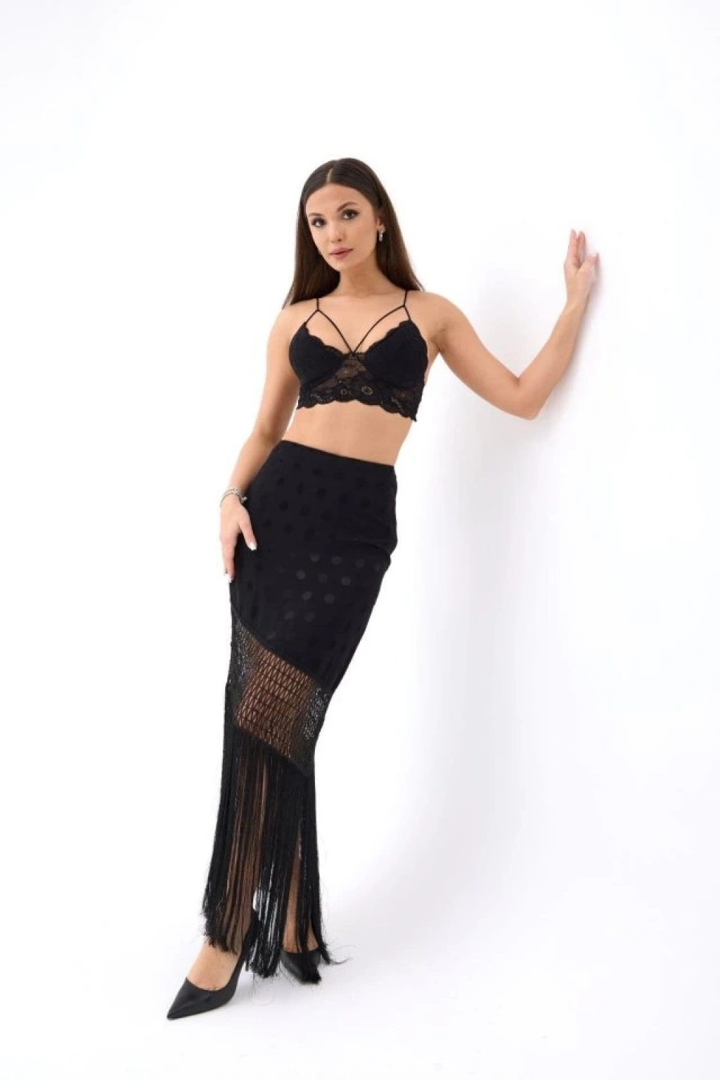 Modelin Ölçüleri: Boy:165, Kg:55, Göğüs:90, Bel:72, Kalça: 100