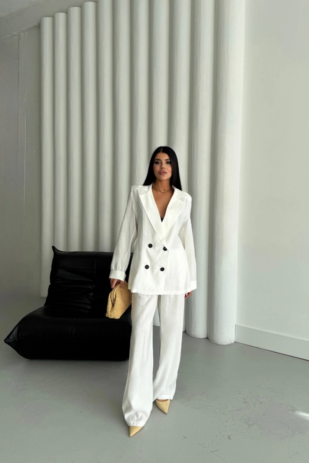 MODAL 4 DÜĞME ASTARSIZ CEKET - PANTOLON TAKIM - Beyaz
