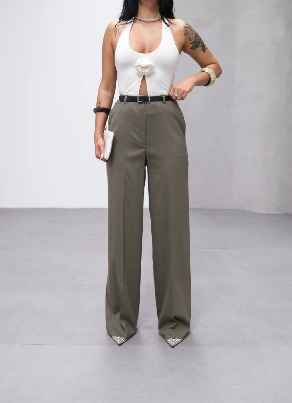 Poly Viscose Yüksek Bel Kemerli̇ Ve Dökümlü Palazzo Pantolon (Kemer Dahi̇l)