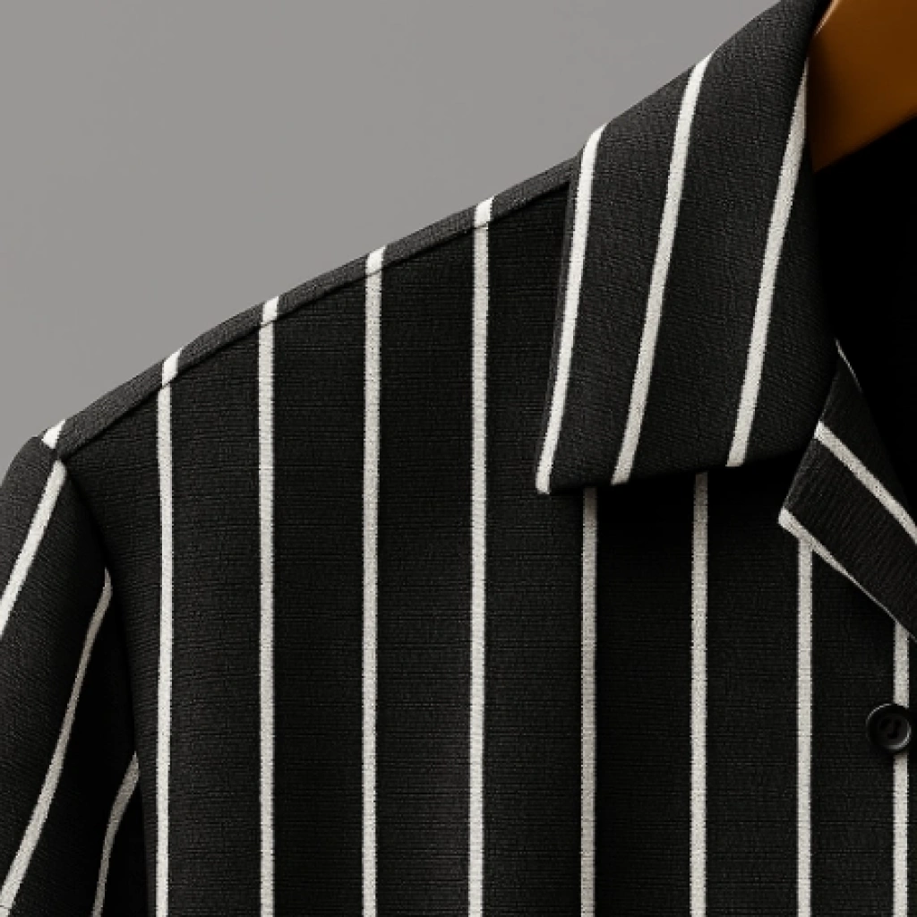 Erkek Kısa Kollu Beyaz çizgi Desenli örme Kumaş Pamuklu Gömlek