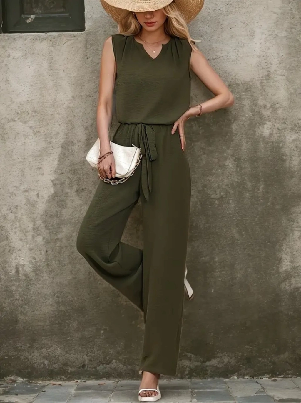 Kadın Kolsuz V Yakalı Aerobin Bluz Ve Belden Kuşaklı Pantolon Ikili Takım
