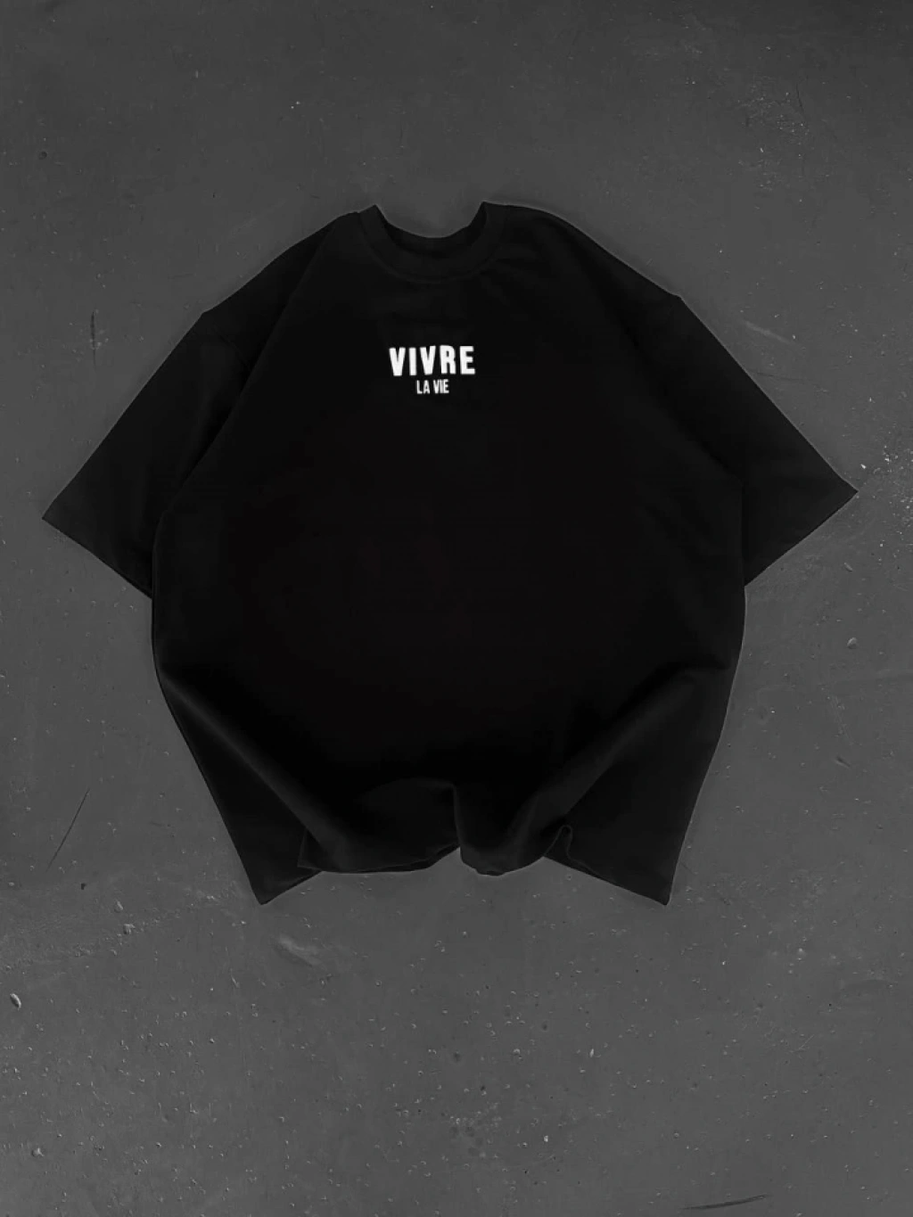 Baskılı Oversize Bisiklet Yaka T-shirt - Siyah