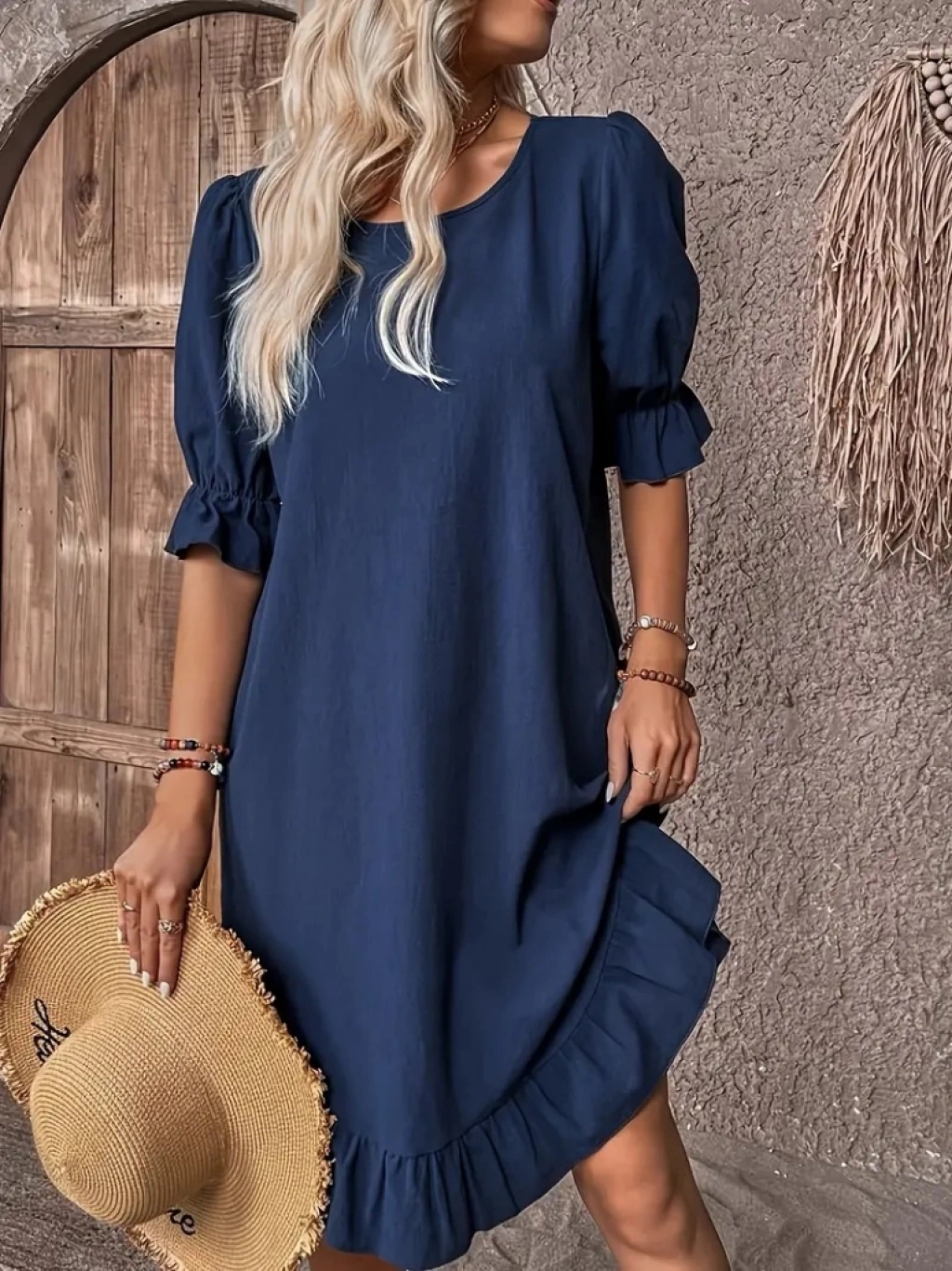 Kadın Kısa Kollu Kol Ve Eteği Volanlı Bisiklet Yaka Aerobin Elbise
