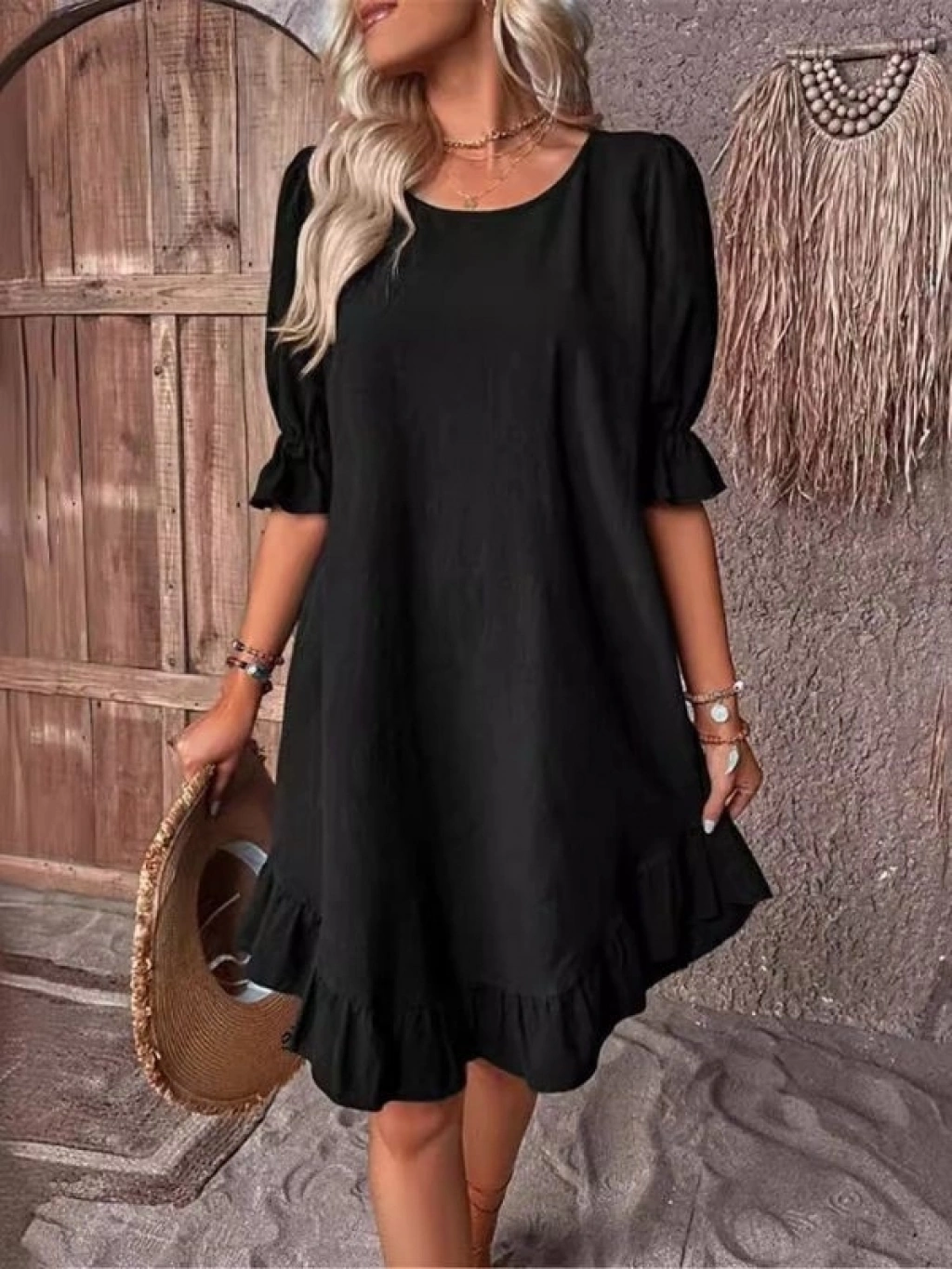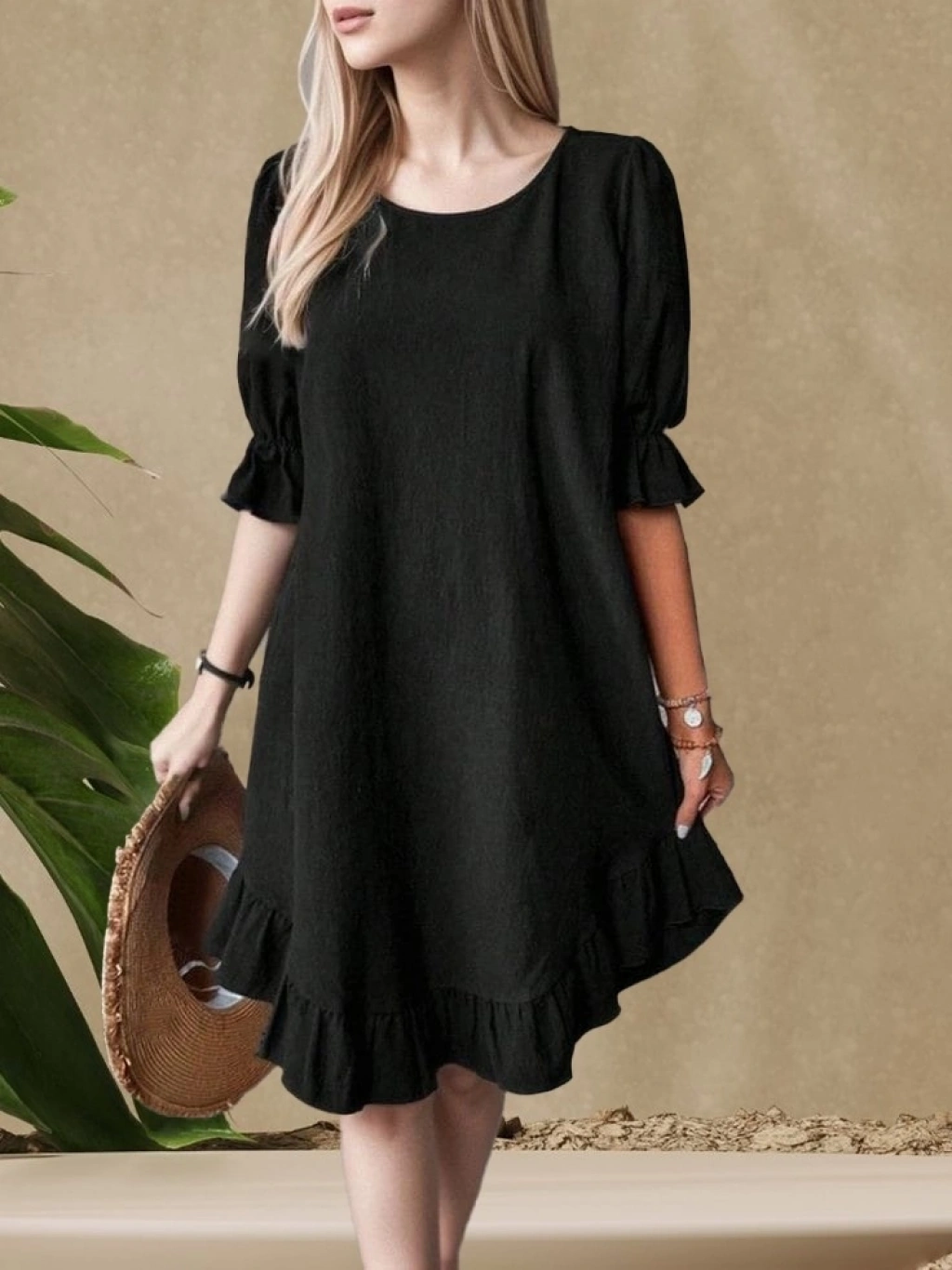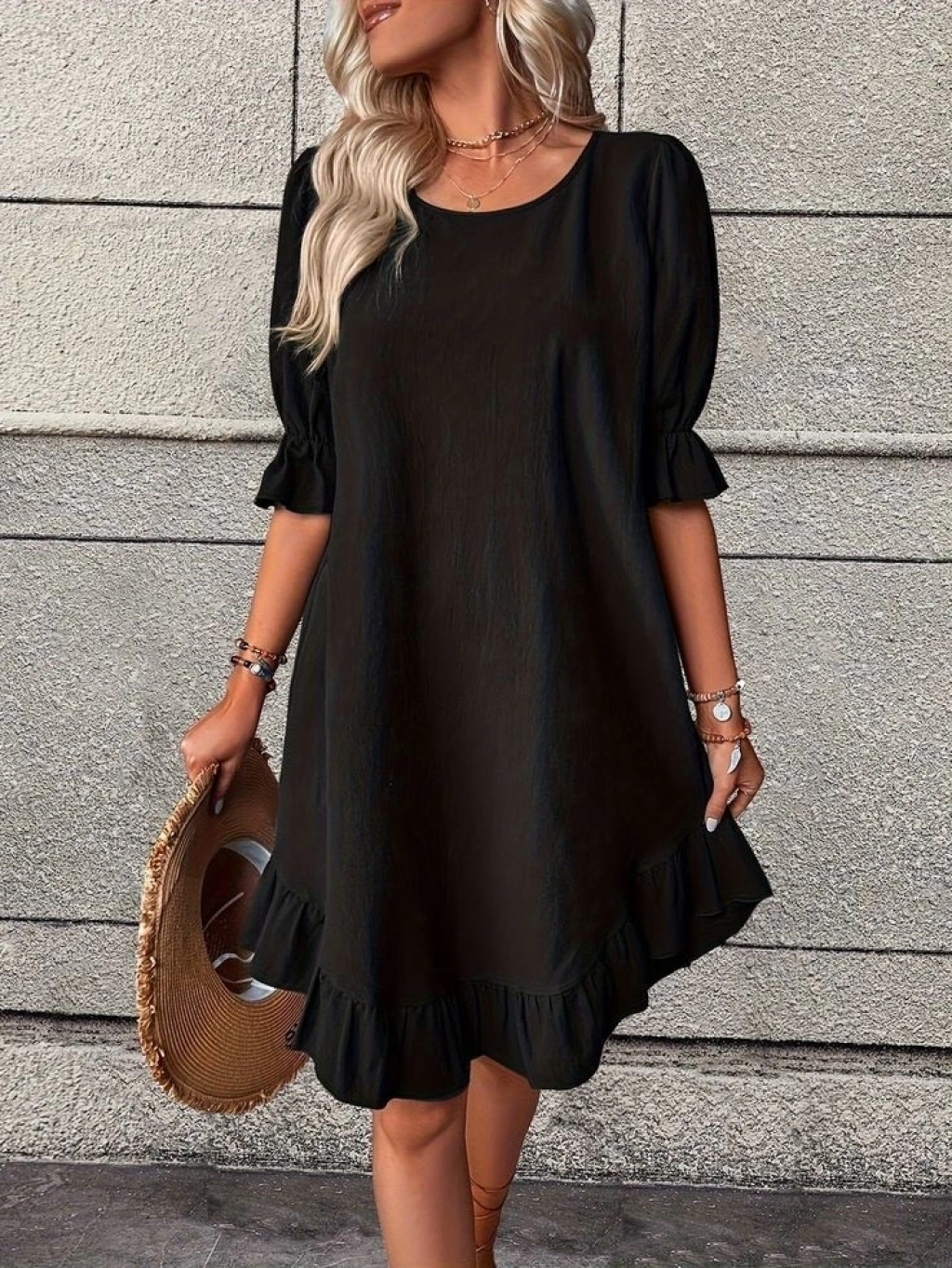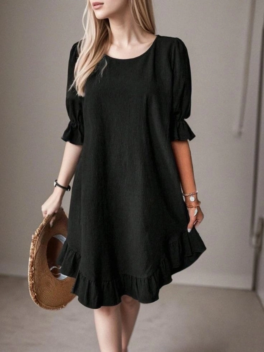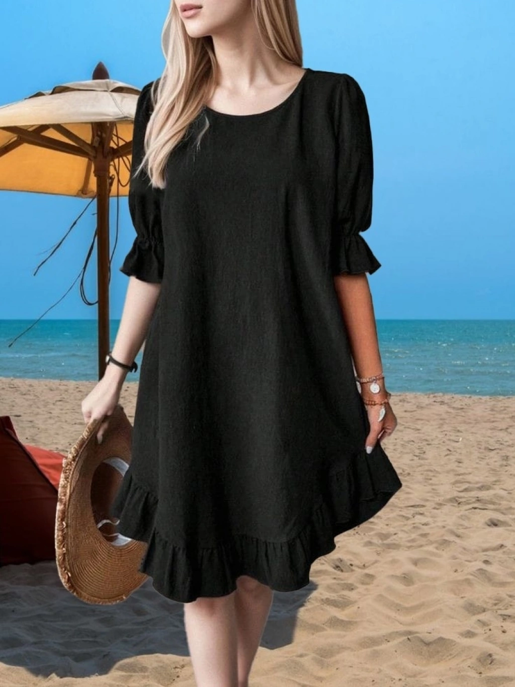 Kadın Kısa Kollu Kol Ve Eteği Volanlı Bisiklet Yaka Aerobin Elbise