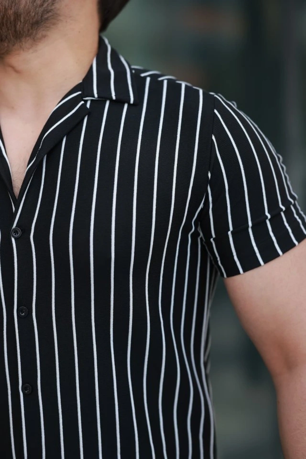 Erkek Kısa Kollu Beyaz çizgi Desenli örme Kumaş Pamuklu Gömlek