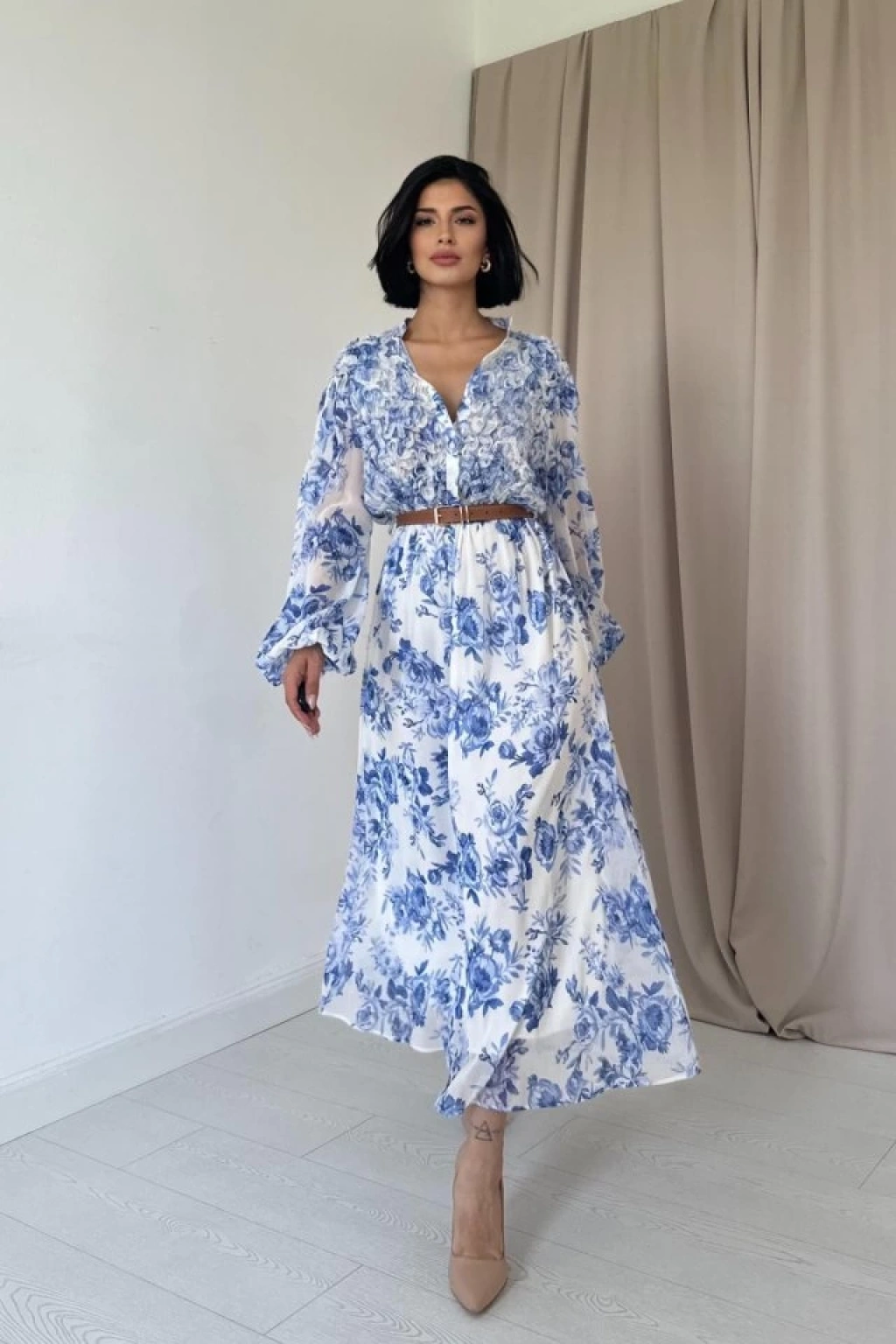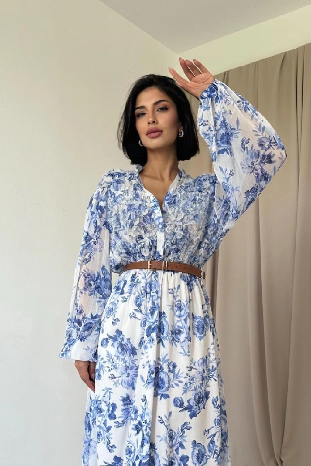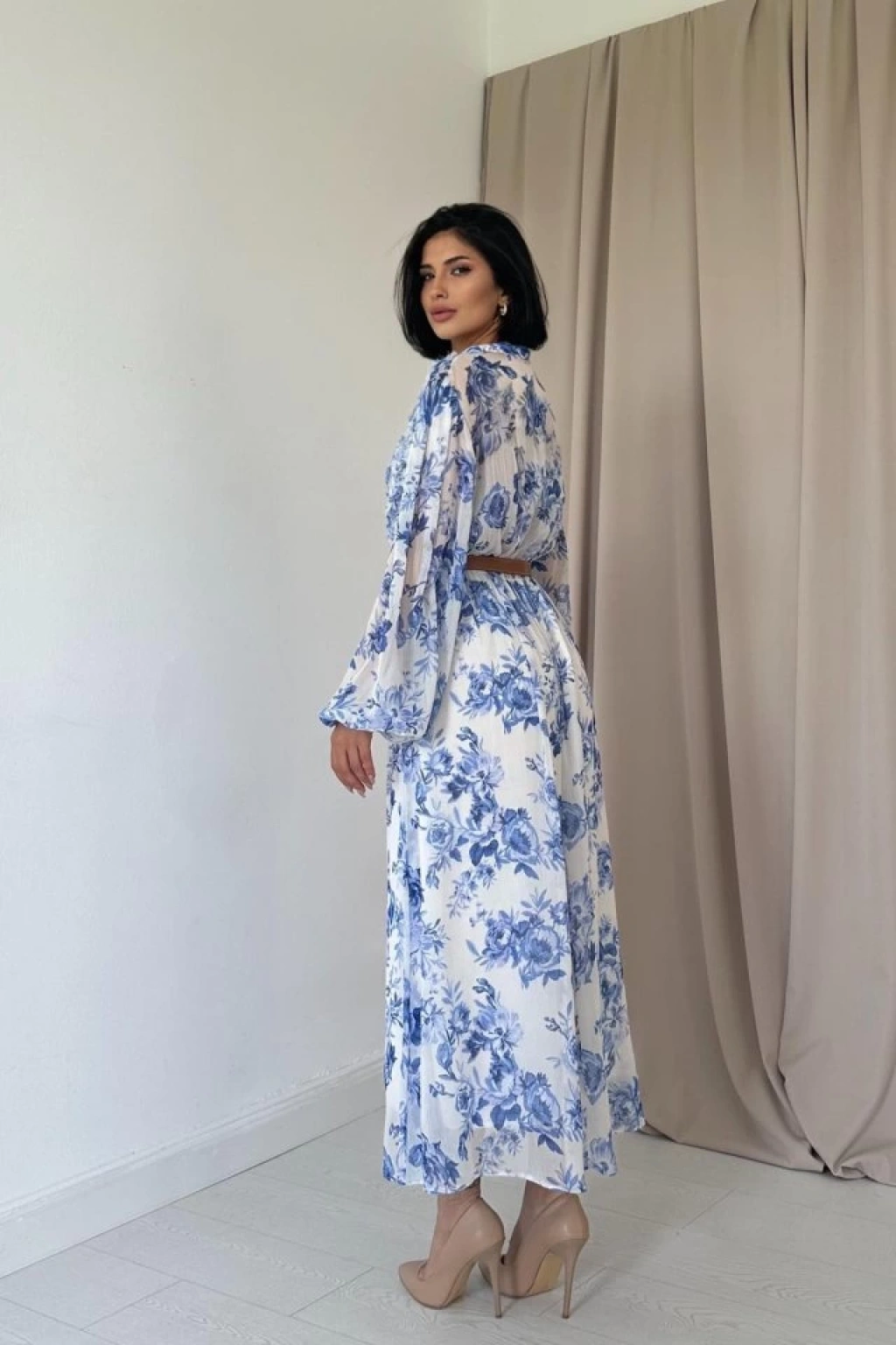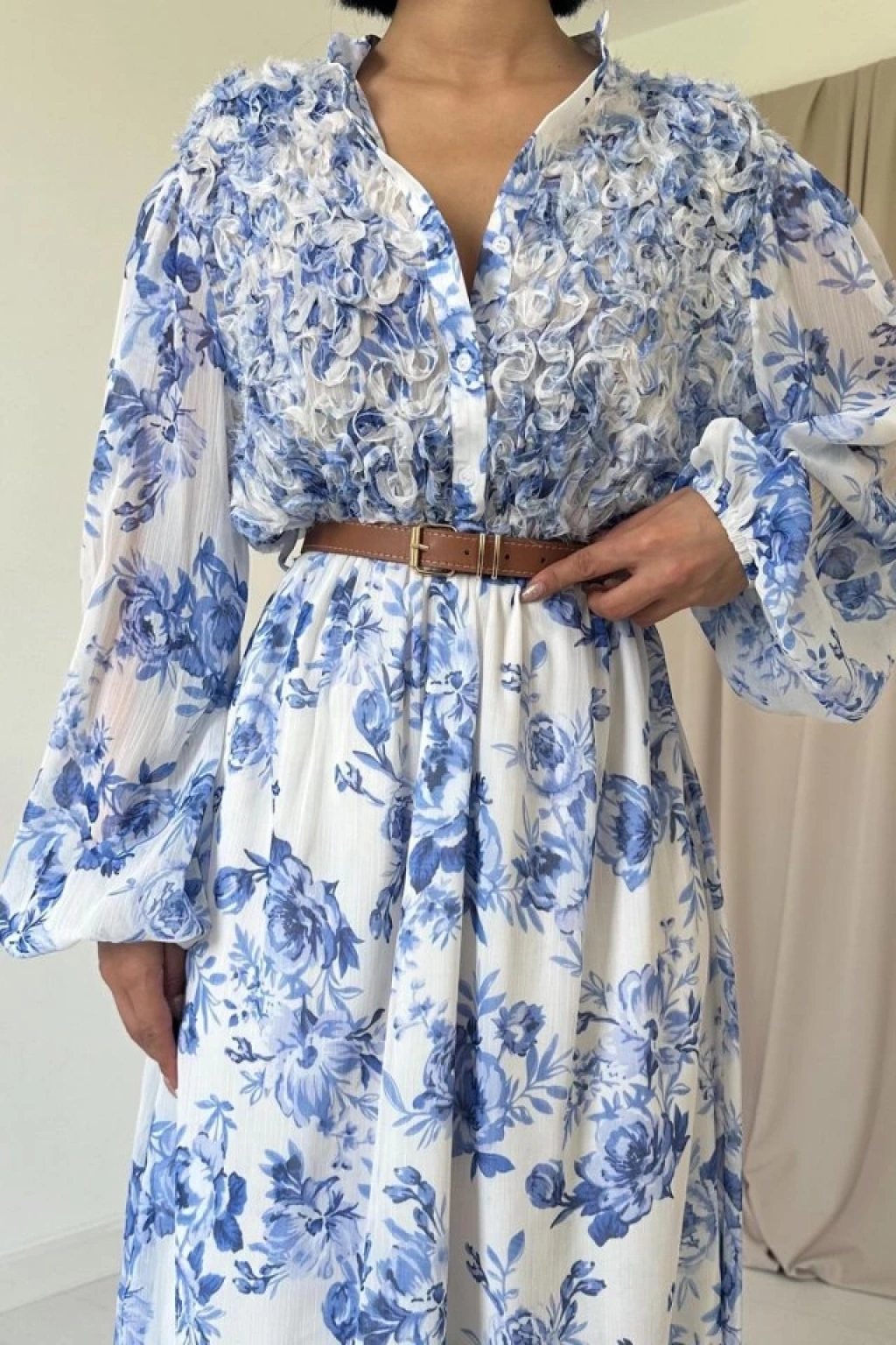 Mavi Biye Detaylı Elbise