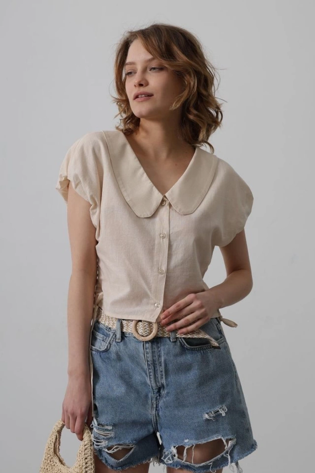 Bebe Yaka Yanları Bağlamalı Bluz - Taş