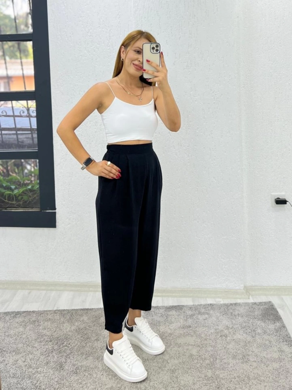 Kadın Aerobin Kumaş Bel Lastikli Pileli Pantolon