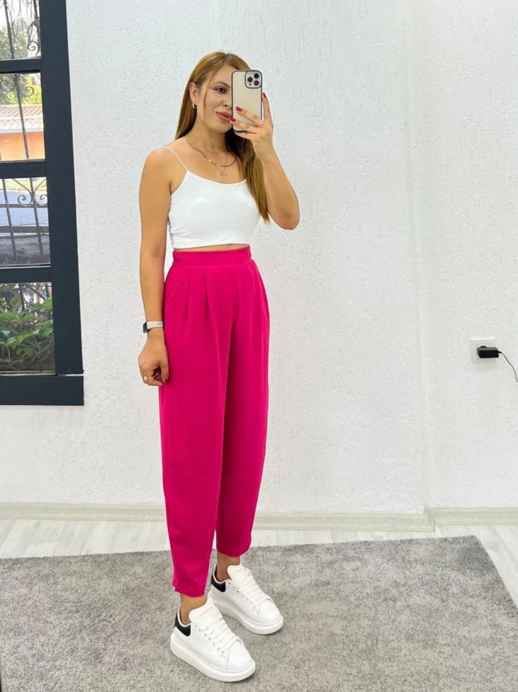 Kadın Aerobin Kumaş Bel Lastikli Pileli Pantolon