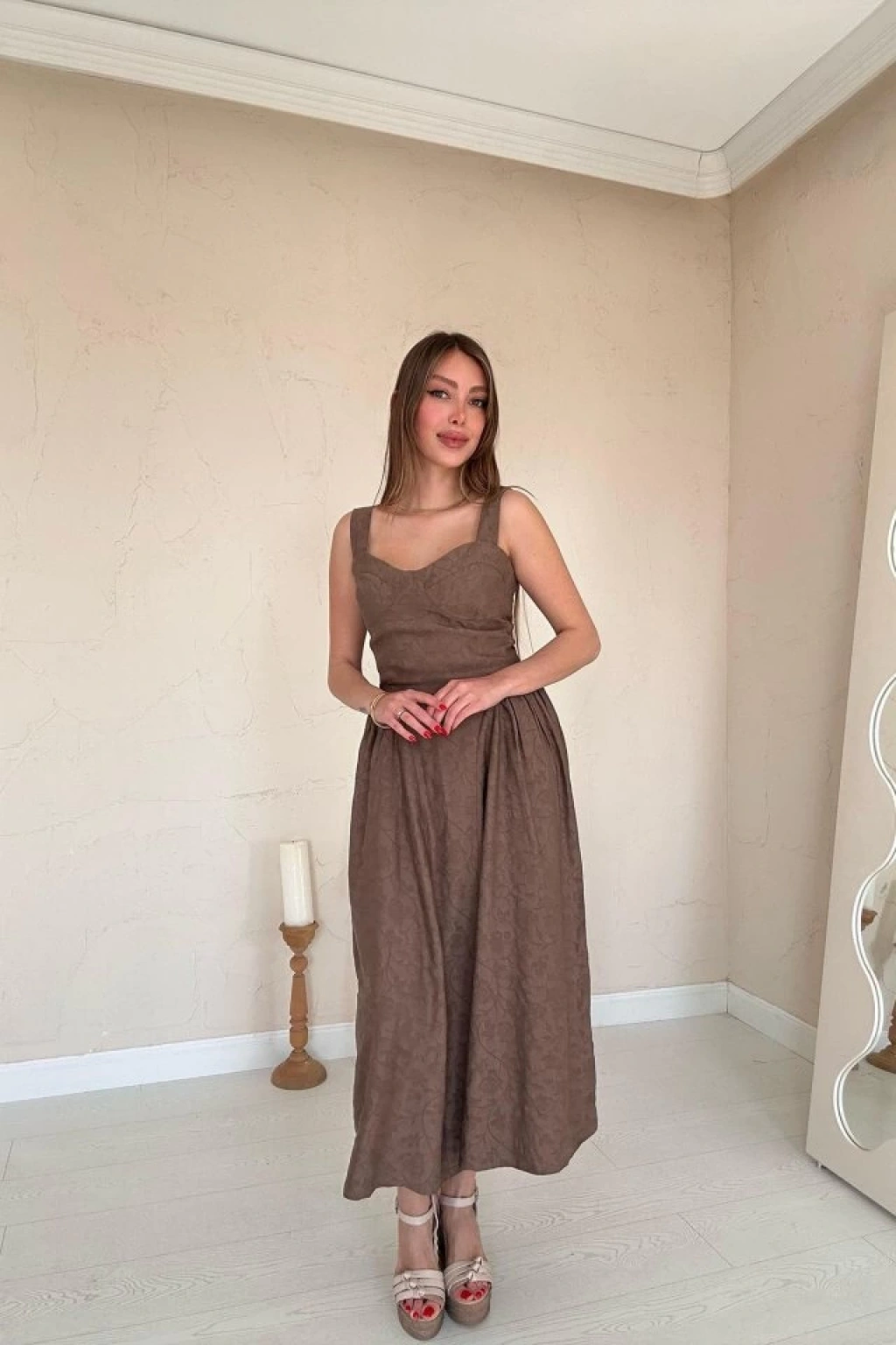 Vizon Yanları Büzgülü Göğüs Kuplu Elbise