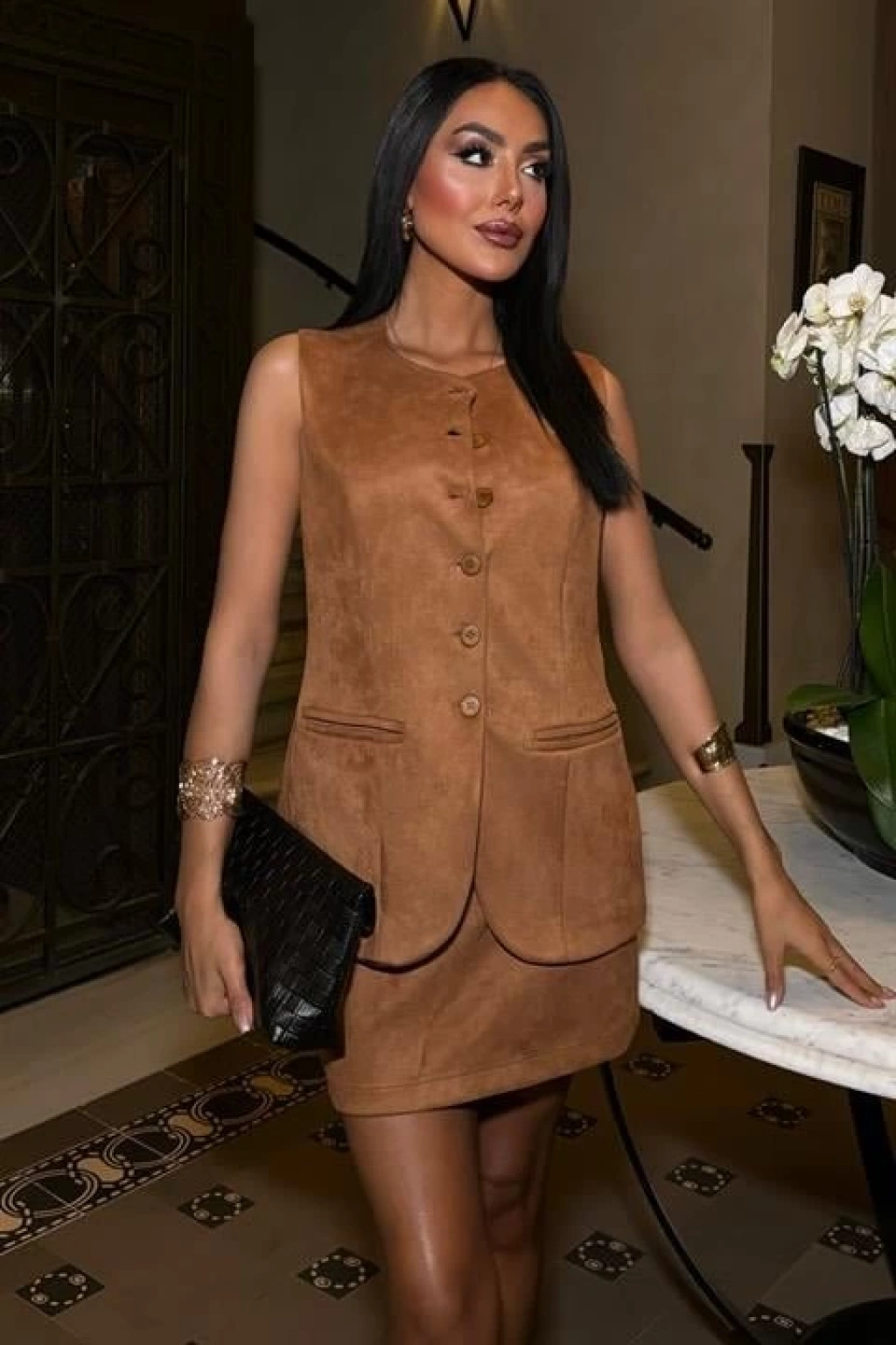 Yelek Ve Mini Etekli İçi Astarlı Süet Takım 9998