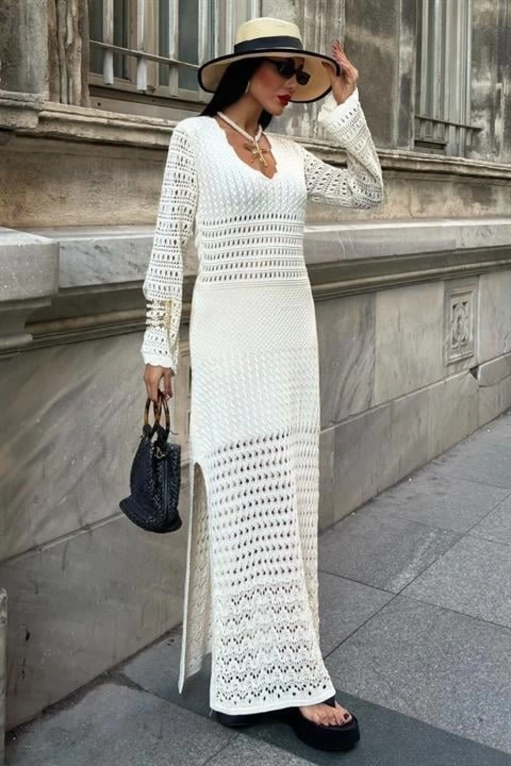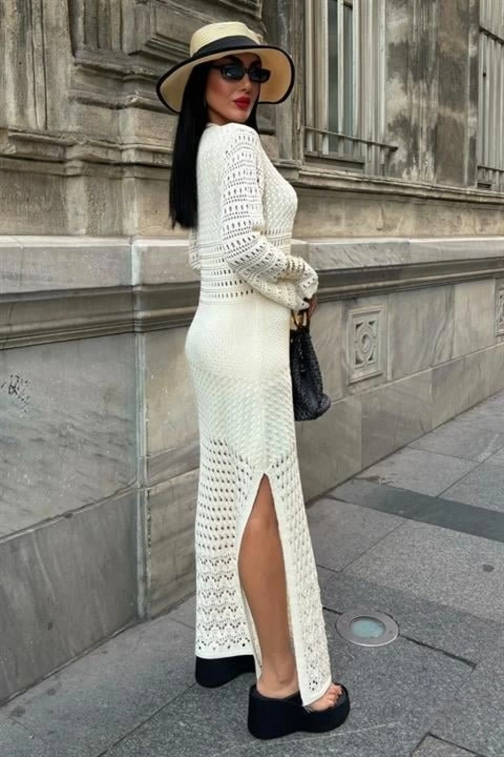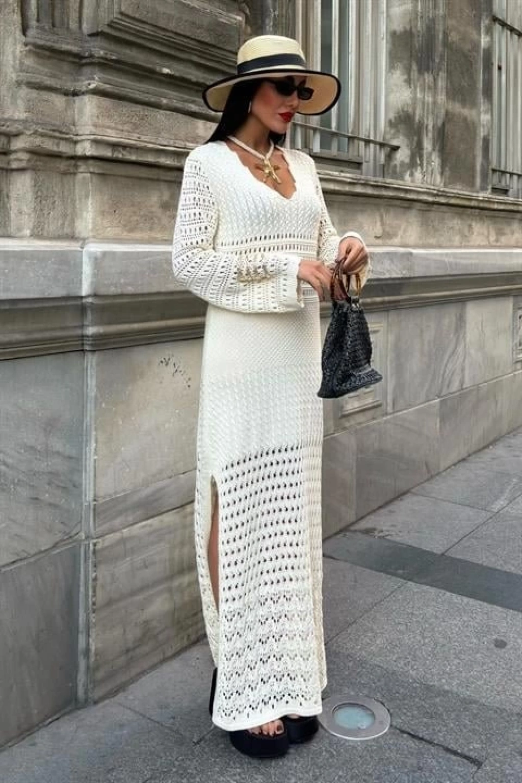 Ajur Detaylı İspanyol Kol Elbise 2840