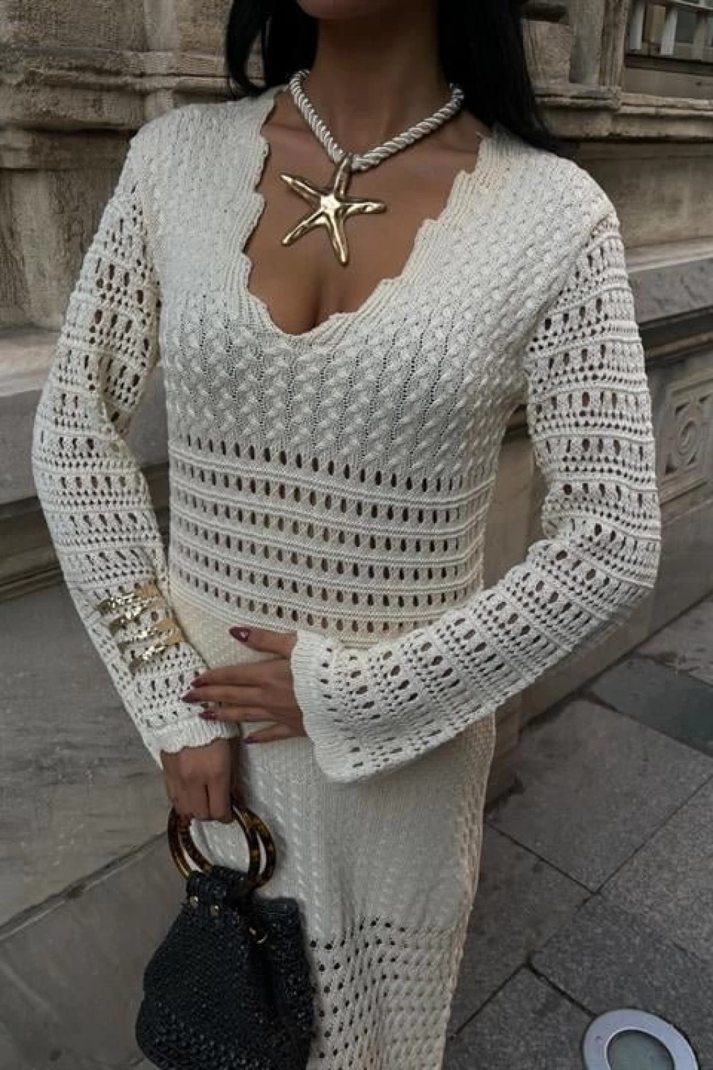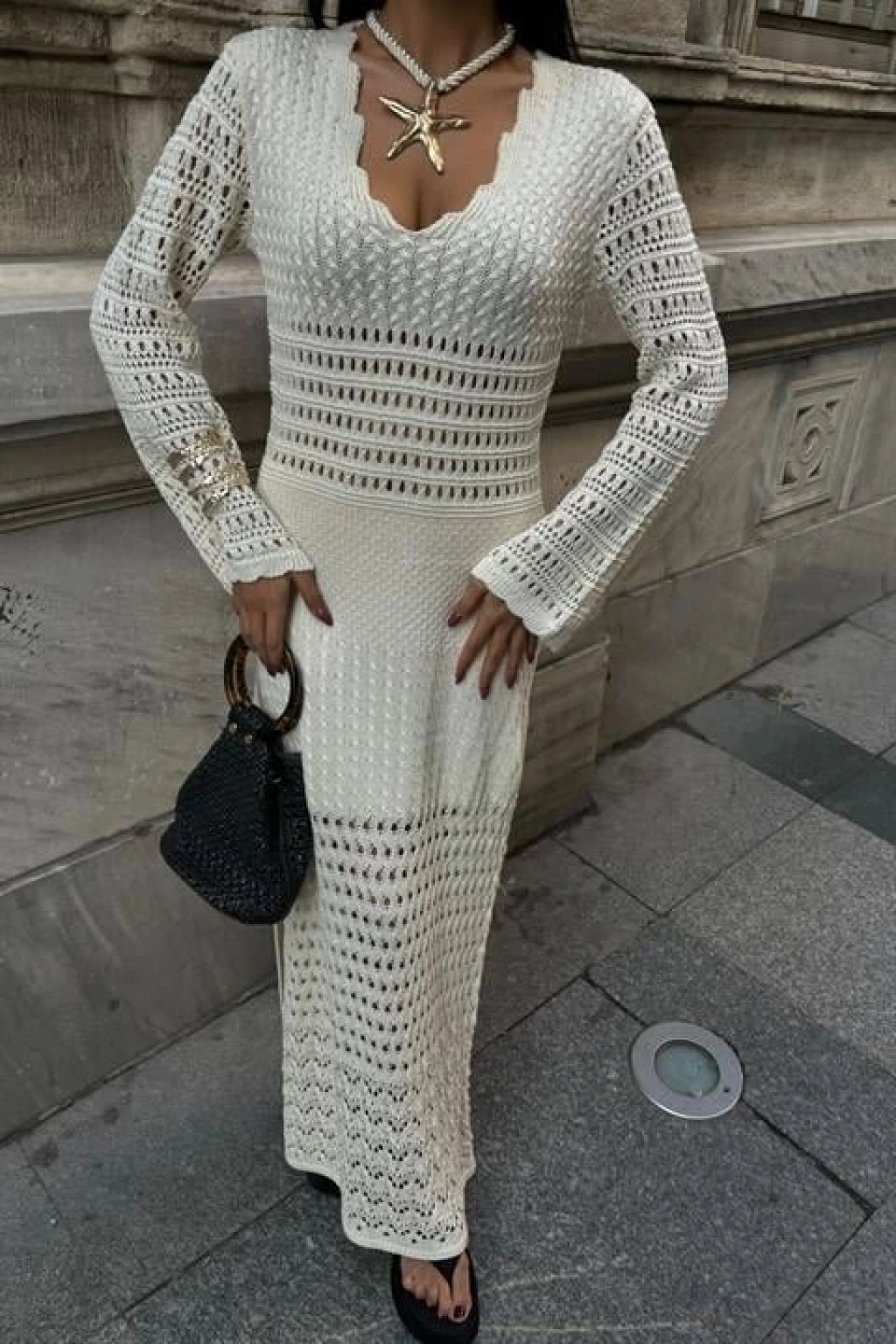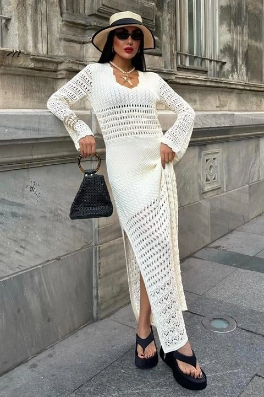 Ajur Detaylı İspanyol Kol Elbise 2840