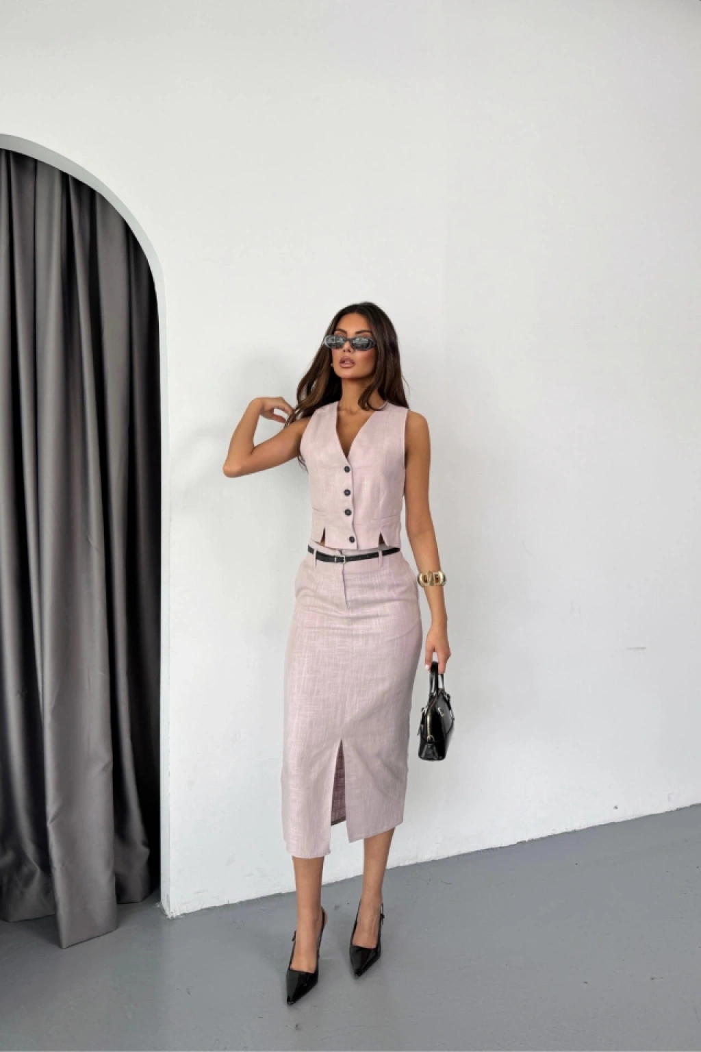YELEK-ÖNDEN YIRTMAÇLI ETEK TK ŞANTUK KETEN - Lila