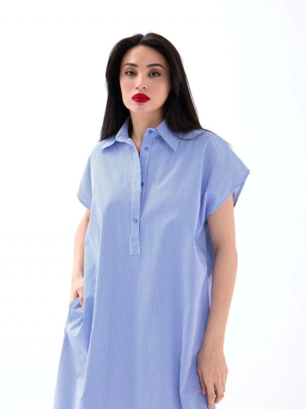 7450 ELBİSE-MAVİ BEYAZ ÇİZGİLİ