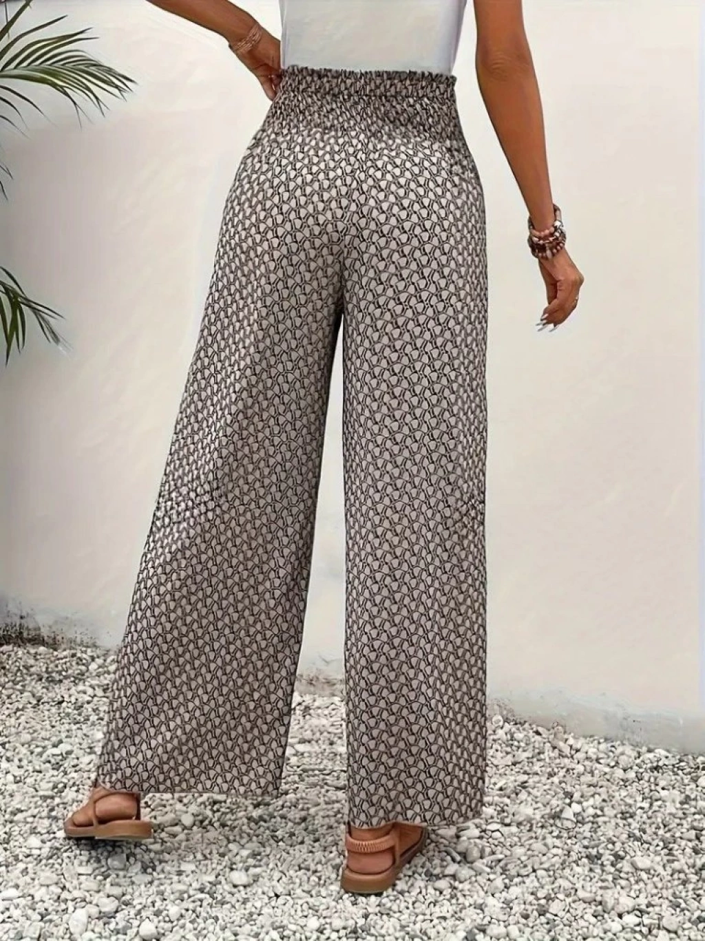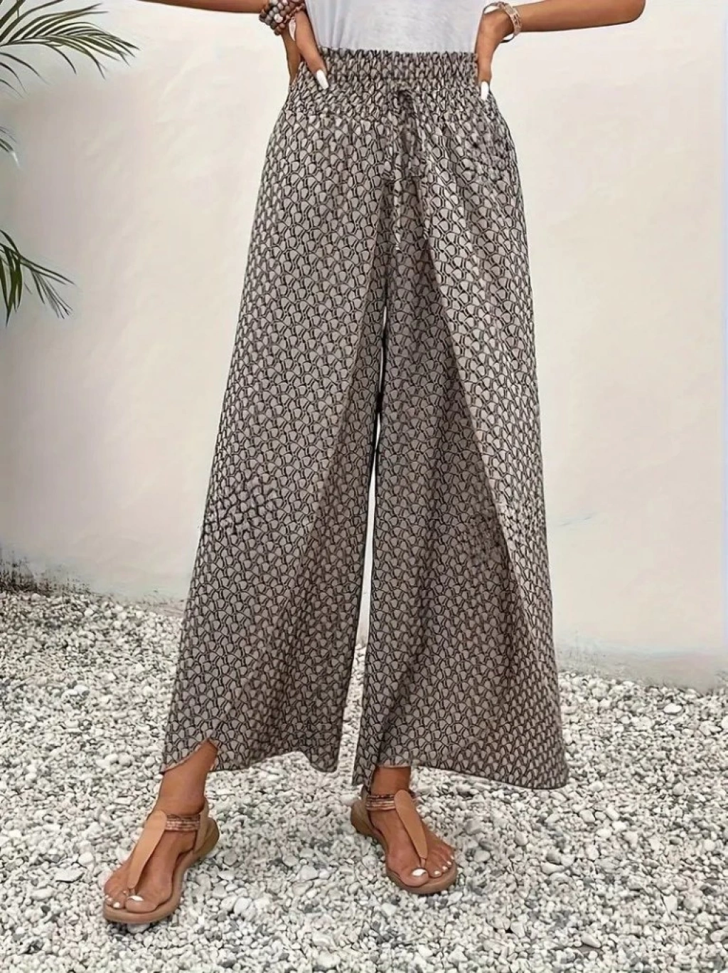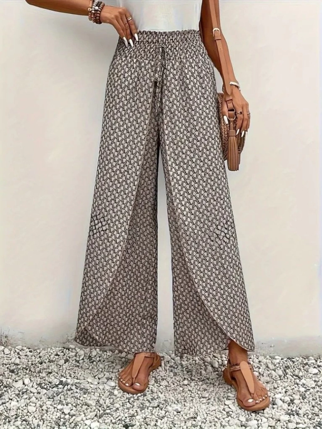 Kadın Yüksek Bel Lastikli önden Iki Parçalı Desenli Bürümcük Pantolon