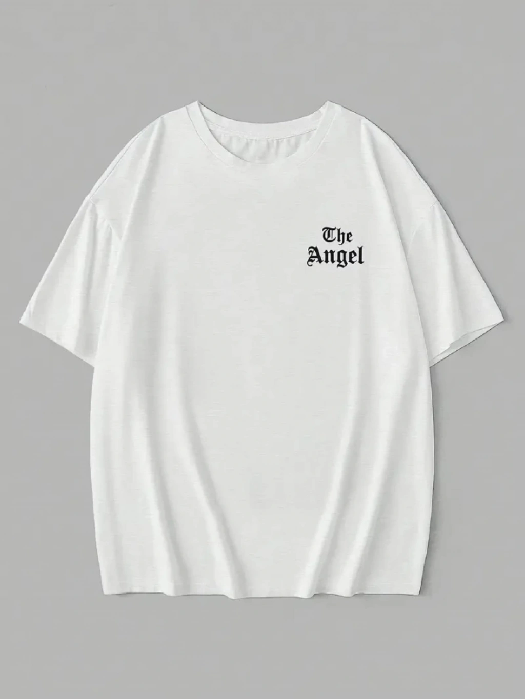 Baskılı Oversize Bisiklet Yaka T-shirt - Beyaz