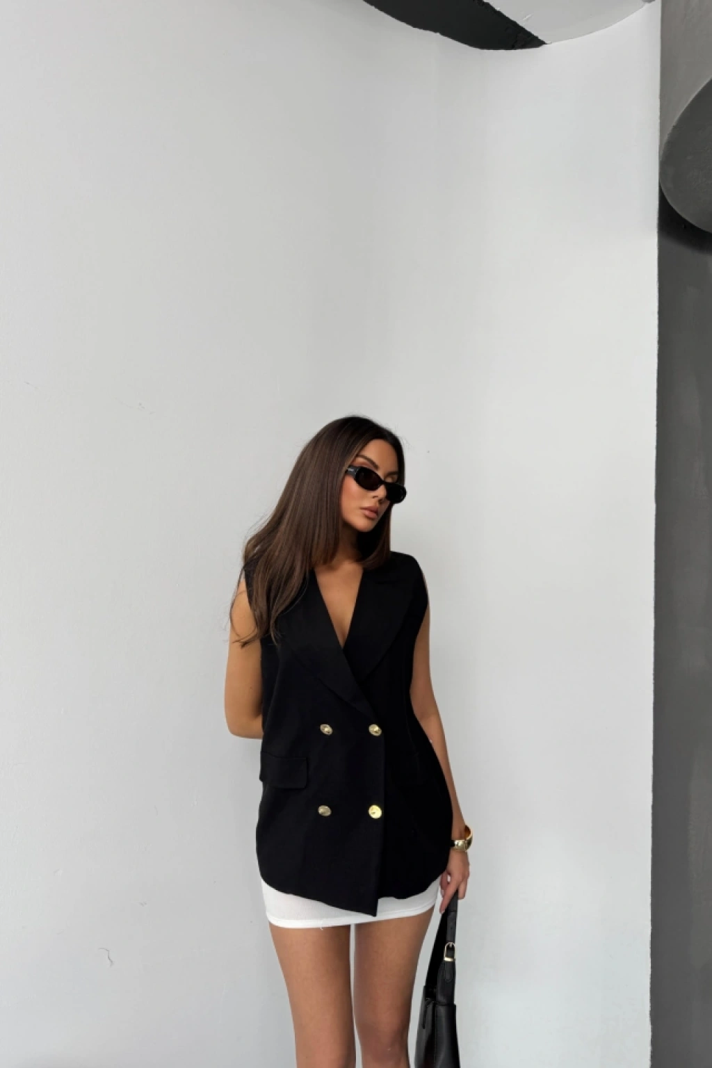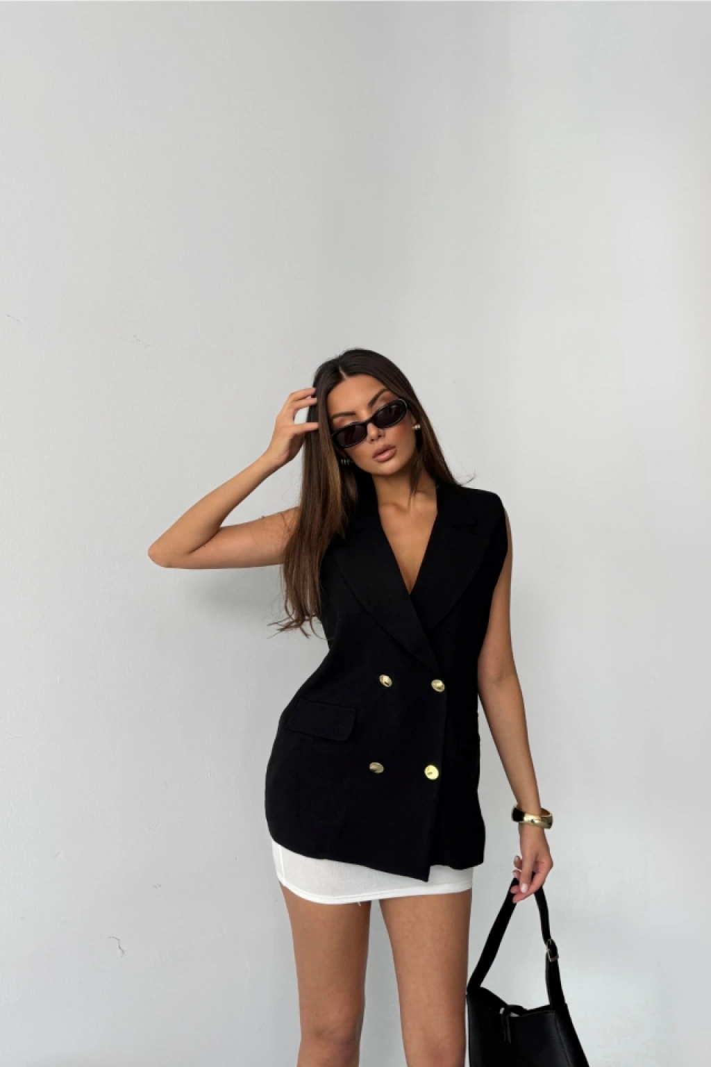 GOLD DÜĞMELİ KETEN YELEK - Siyah