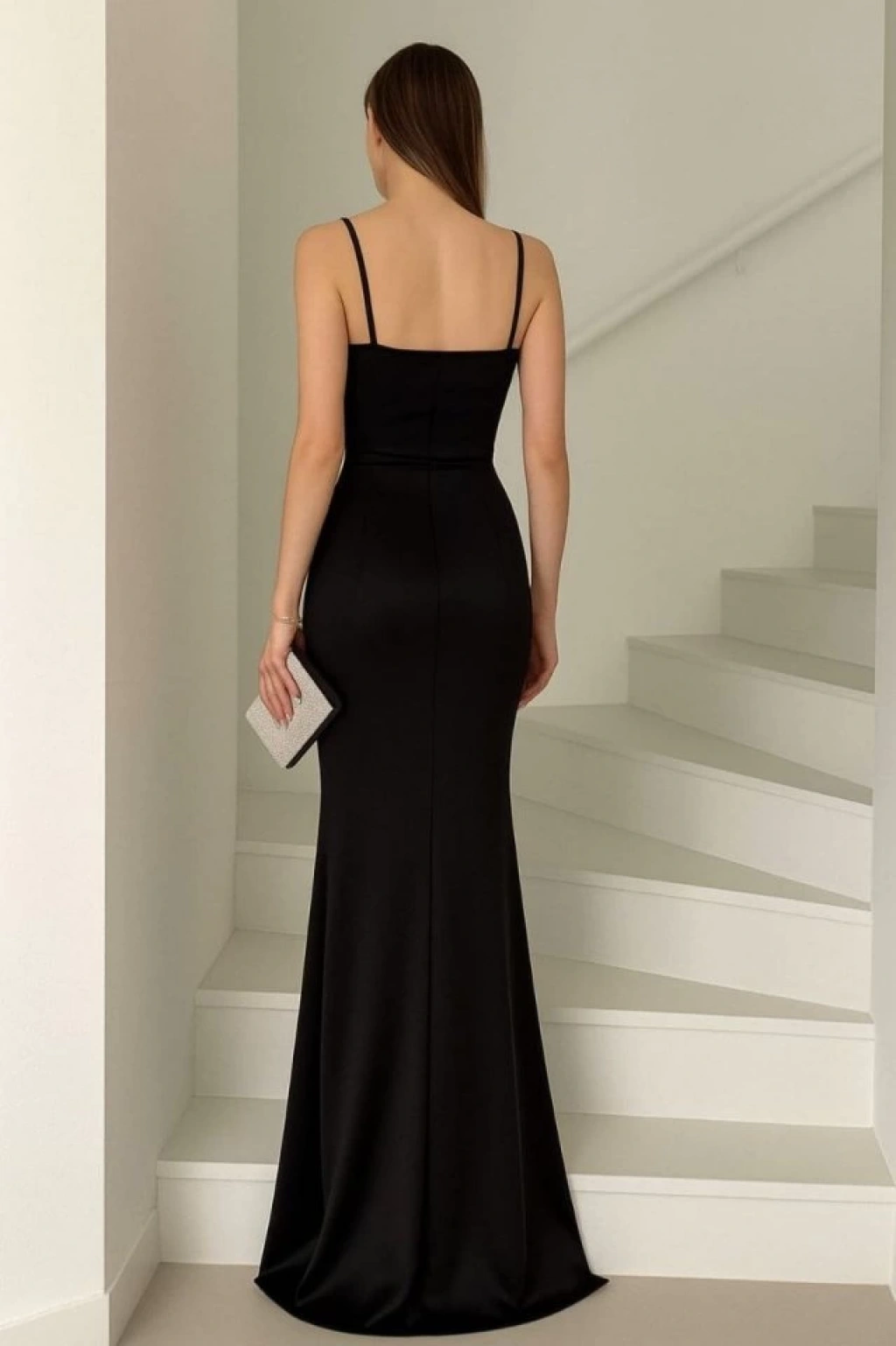 Kadın Dalgıç Kumaş V Yaka Yırtmaç Detaylı Maxi Boy Elbise
