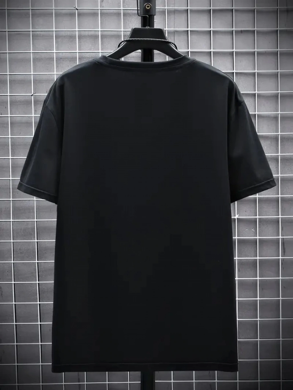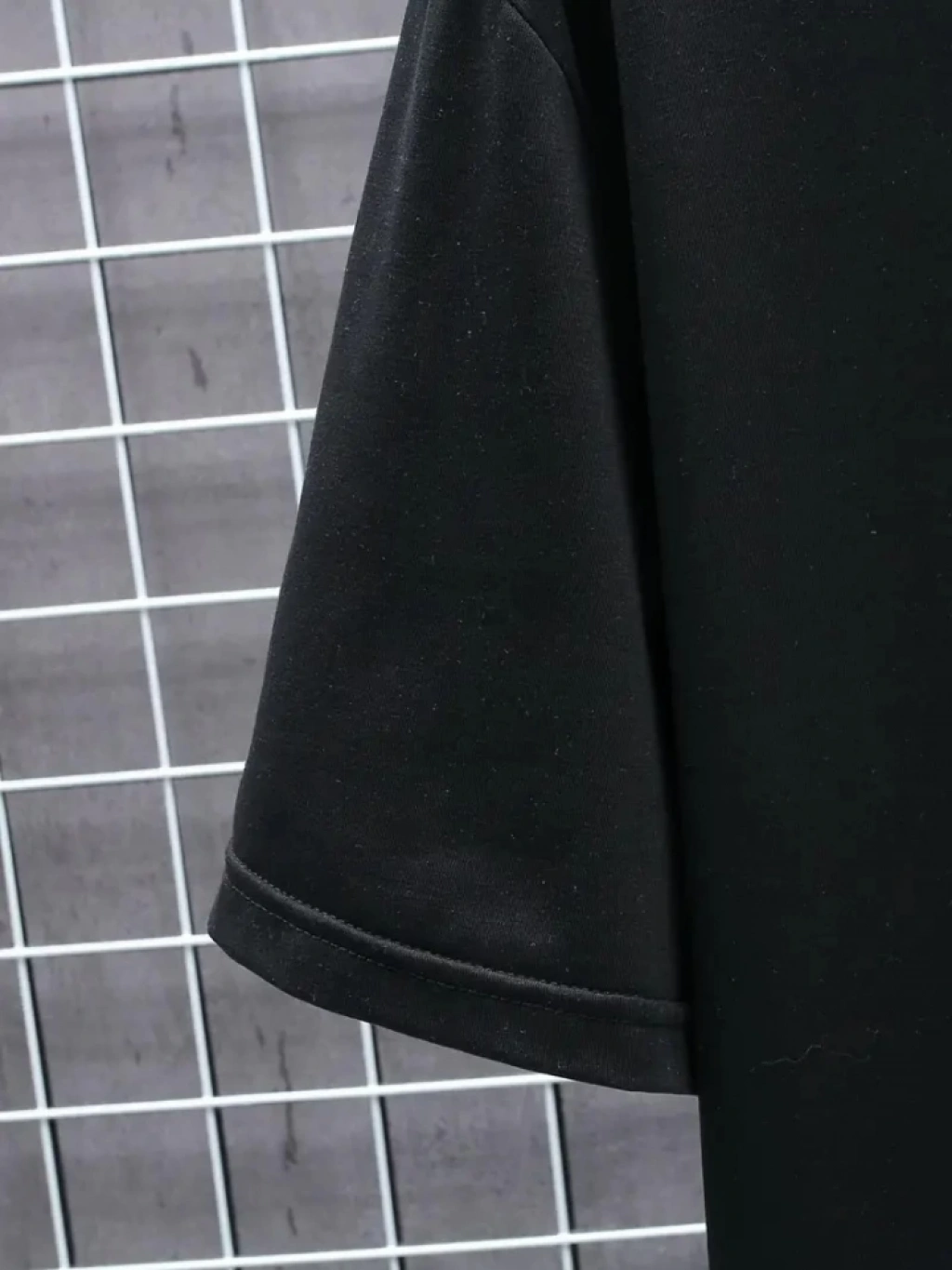 Baskılı Oversize Bisiklet Yaka T-shirt - Siyah
