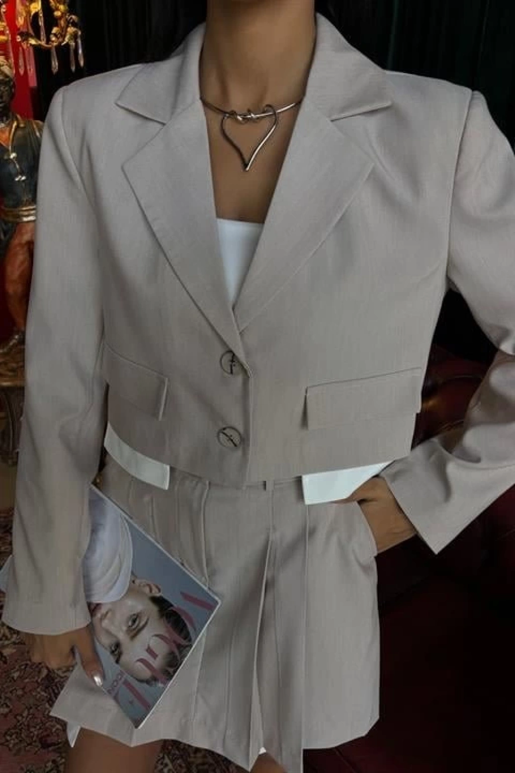 Crop Ceketli Ve Pile Etekli Garnili Takım 10111
