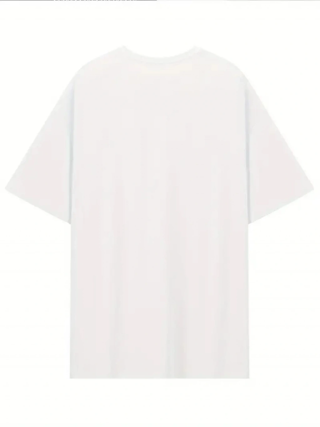 Baskılı Oversize Bisiklet Yaka T-shirt - Beyaz
