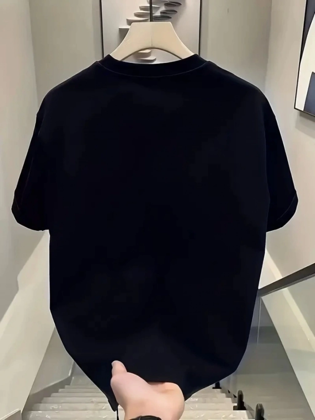 Baskılı Oversize Bisiklet Yaka T-shirt - Siyah