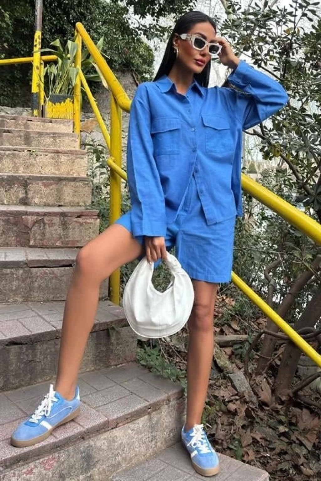 Gömlek Ve Şort Flamlı Keten Takım 10130