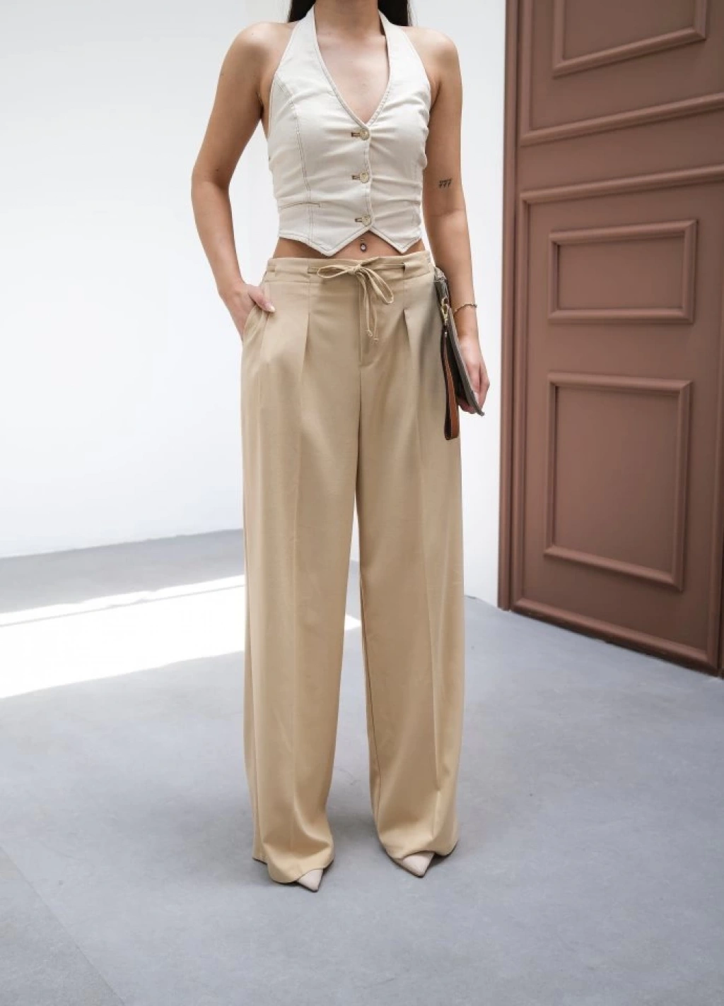 Beli̇ Lasti̇k Ve Bağcikli Geni̇ş Paça Pantolon