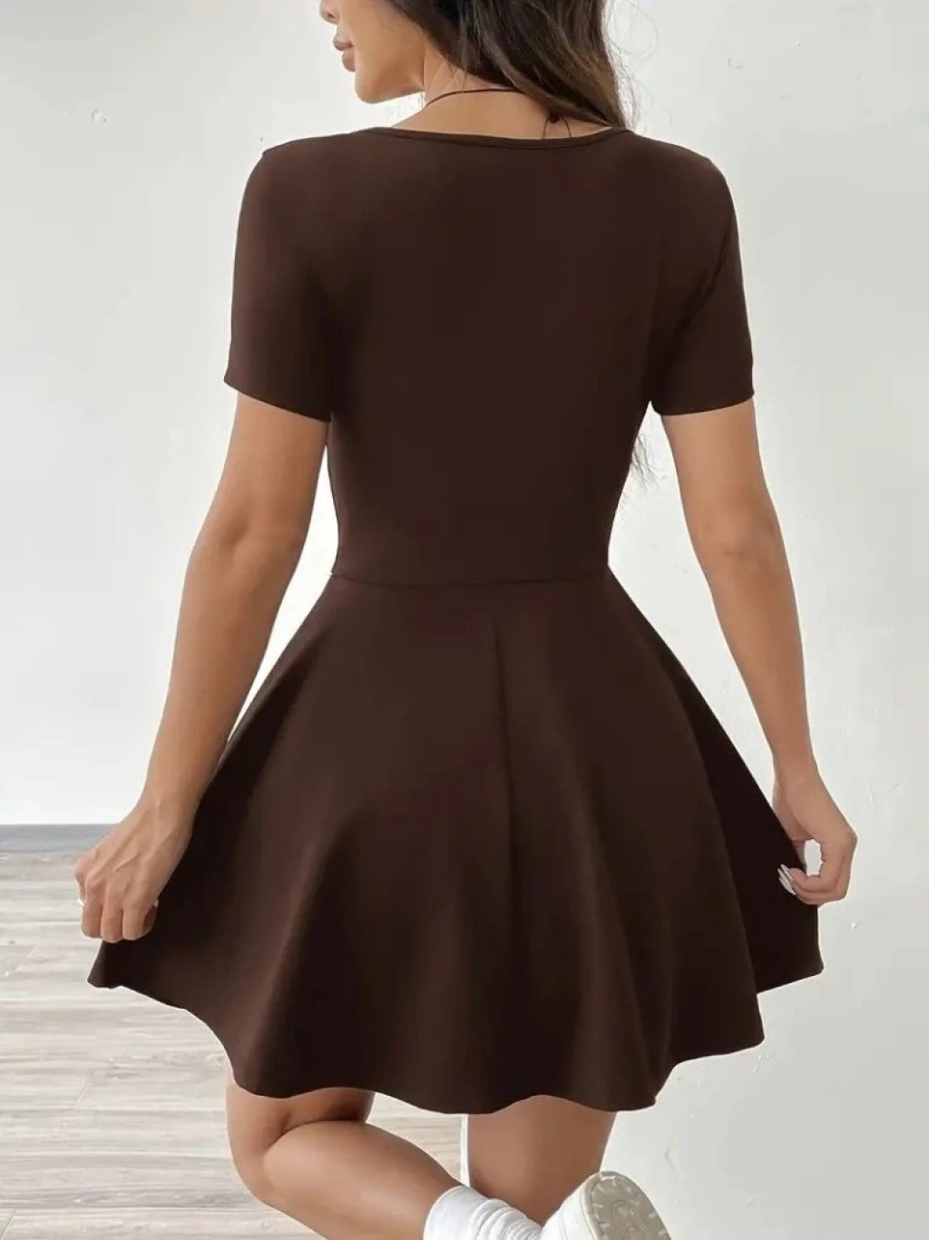 Kadın Kısa Kollu Kare Yaka Short Detaylı Cepli Dalgıç Elbise
