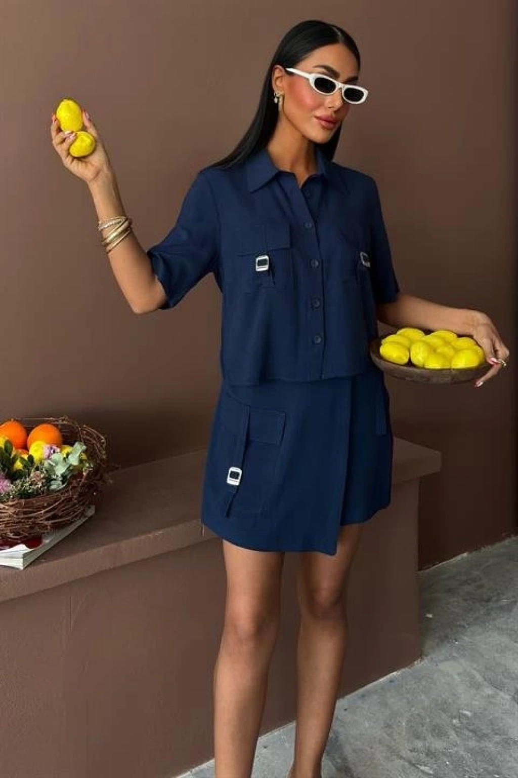 Gömlek Şort Etek Viscon Keten Takım 10162