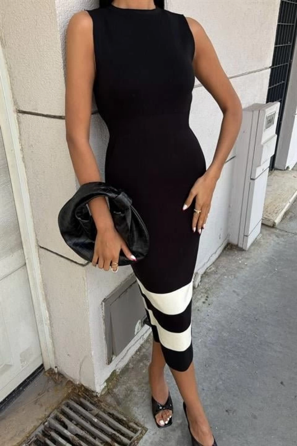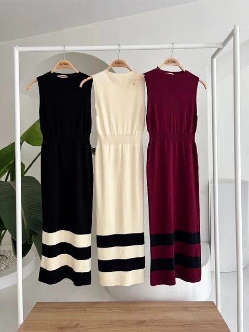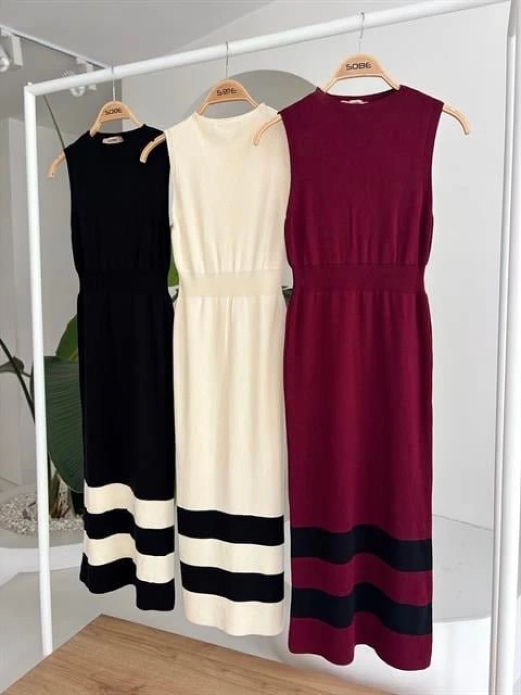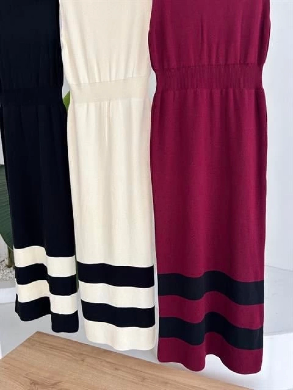 Etek Ucu Şerit Detaylı Triko Elbise 2831
