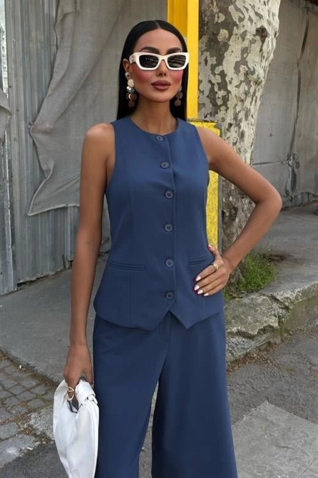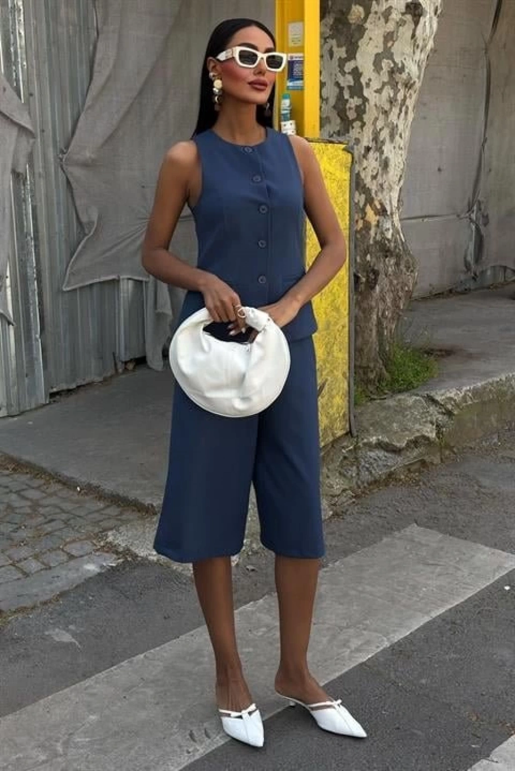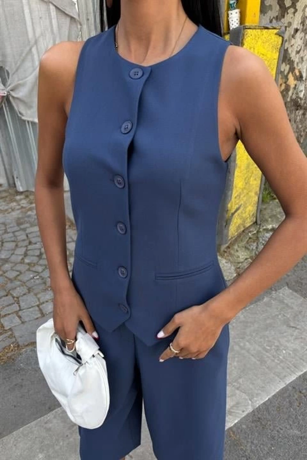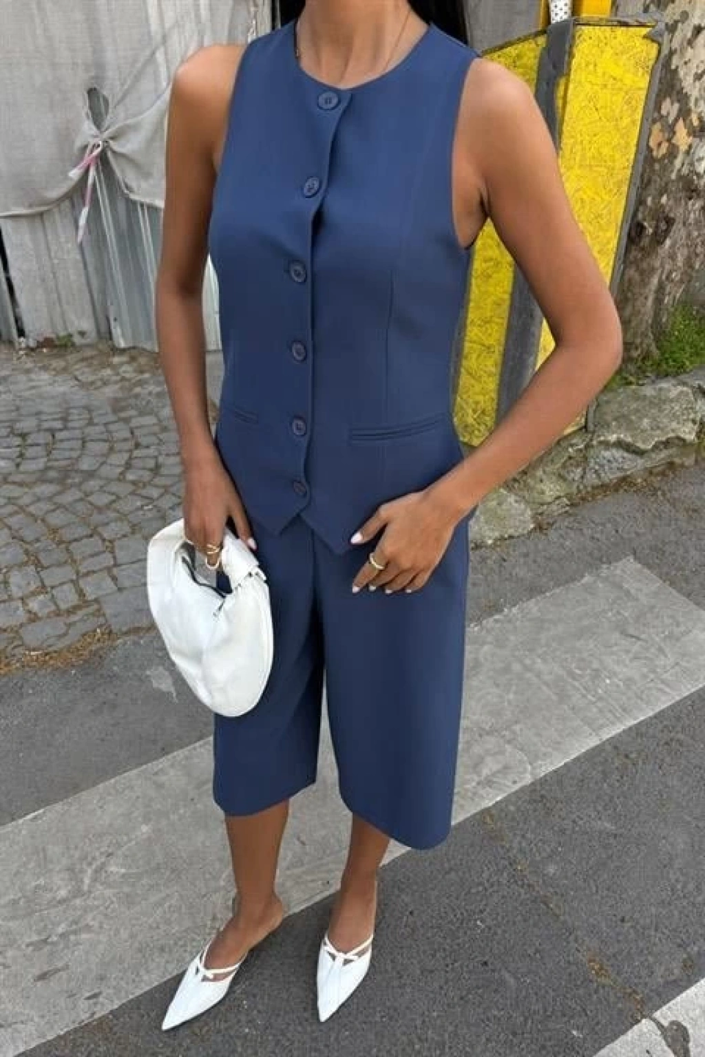 Midi Şortlu Ve Yelekli Viscon Takım 10167