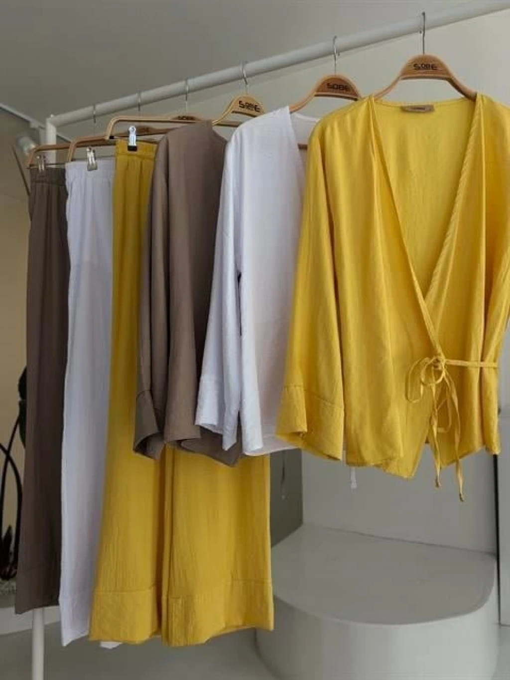 Kruvaze Model Klasik Pantolonlu Çupra Keten Takım 10191