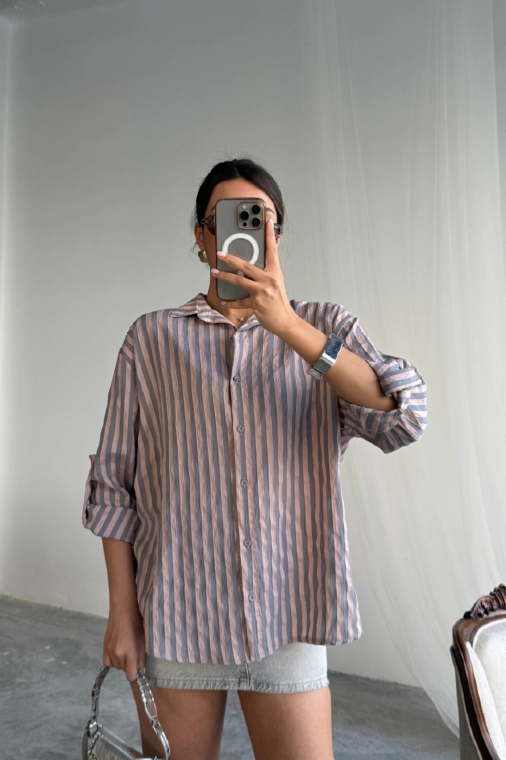 ÇİZGİLİ GÖMLEKKETEN - Antrasit