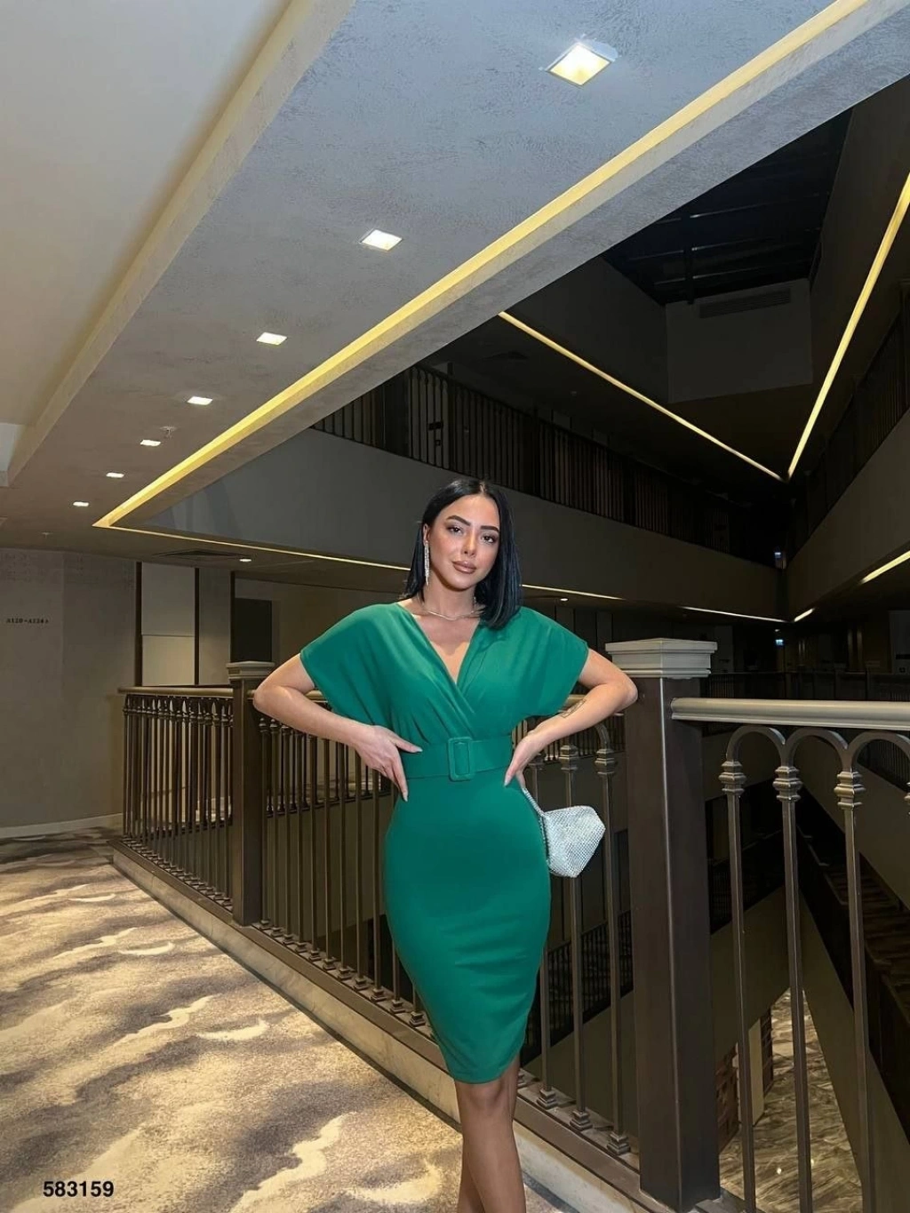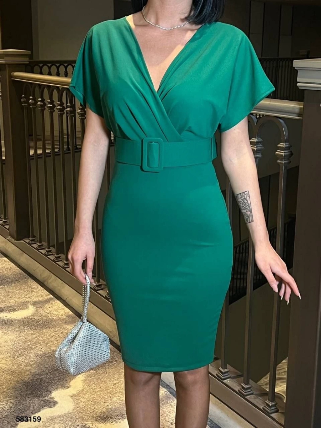 Kadın Dalgıç Krep V Yaka Ve Sırt Dekolte Detaylı Elbise