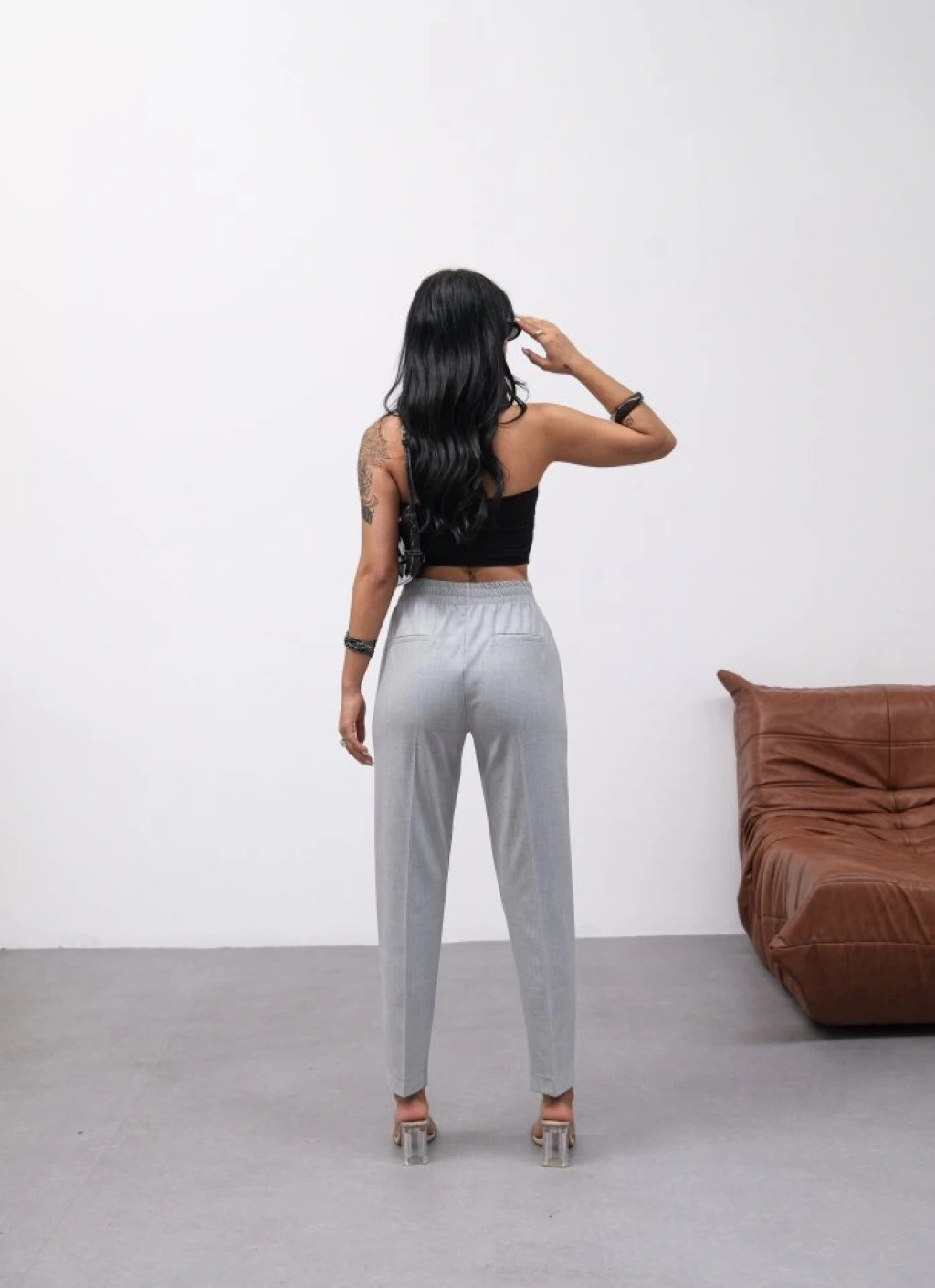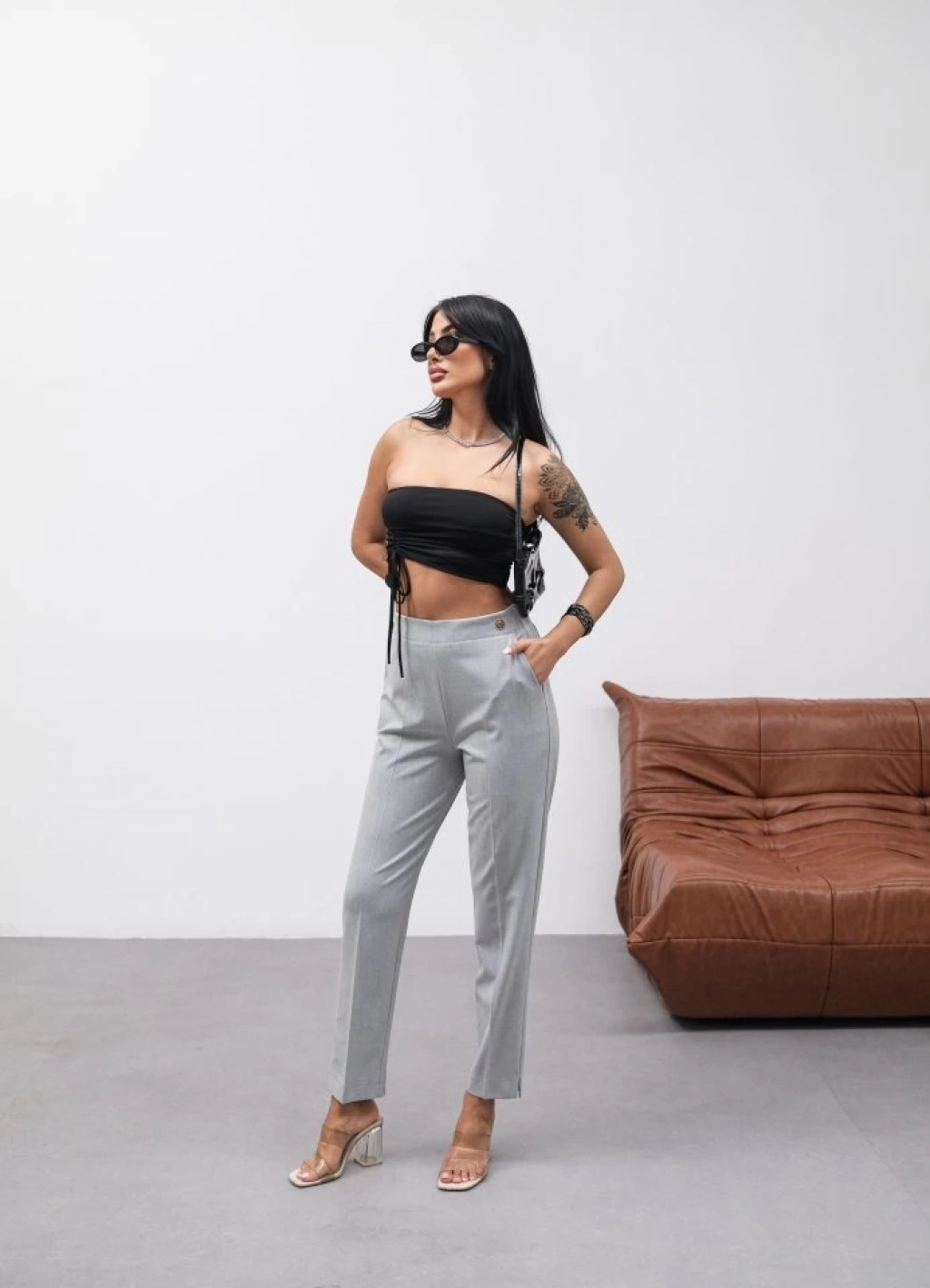 Dekorati̇f Düğmeli̇ Arka Bel Lasti̇kli̇ Pantolon