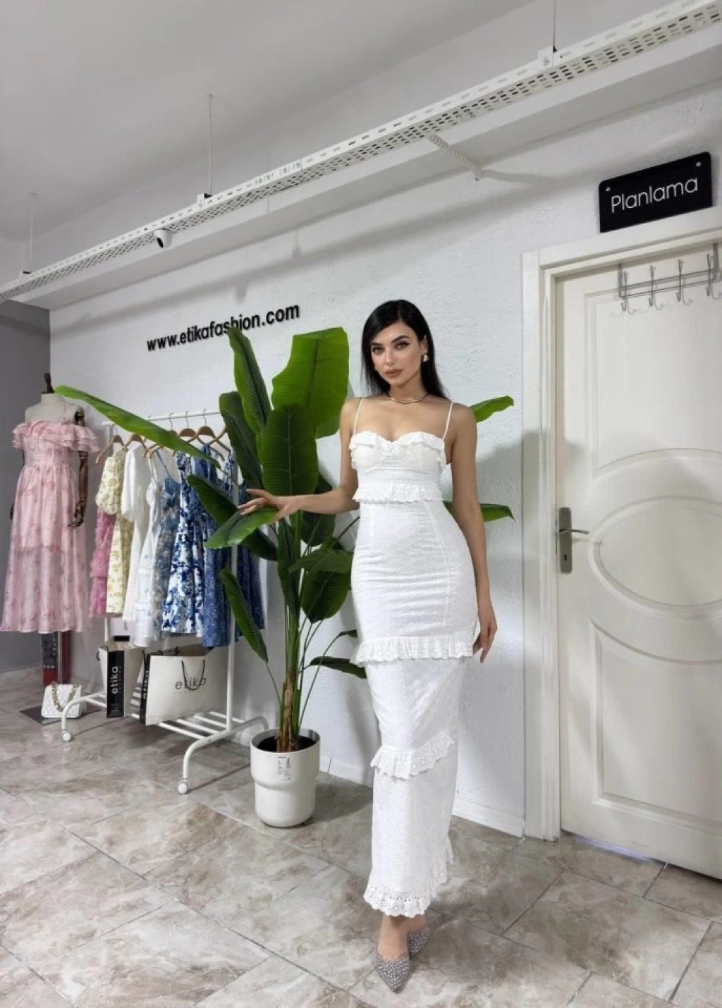 Modelin Ölçüleri: Boy:165, Kg:55, Göğüs:90, Bel:72, Kalça: 100
