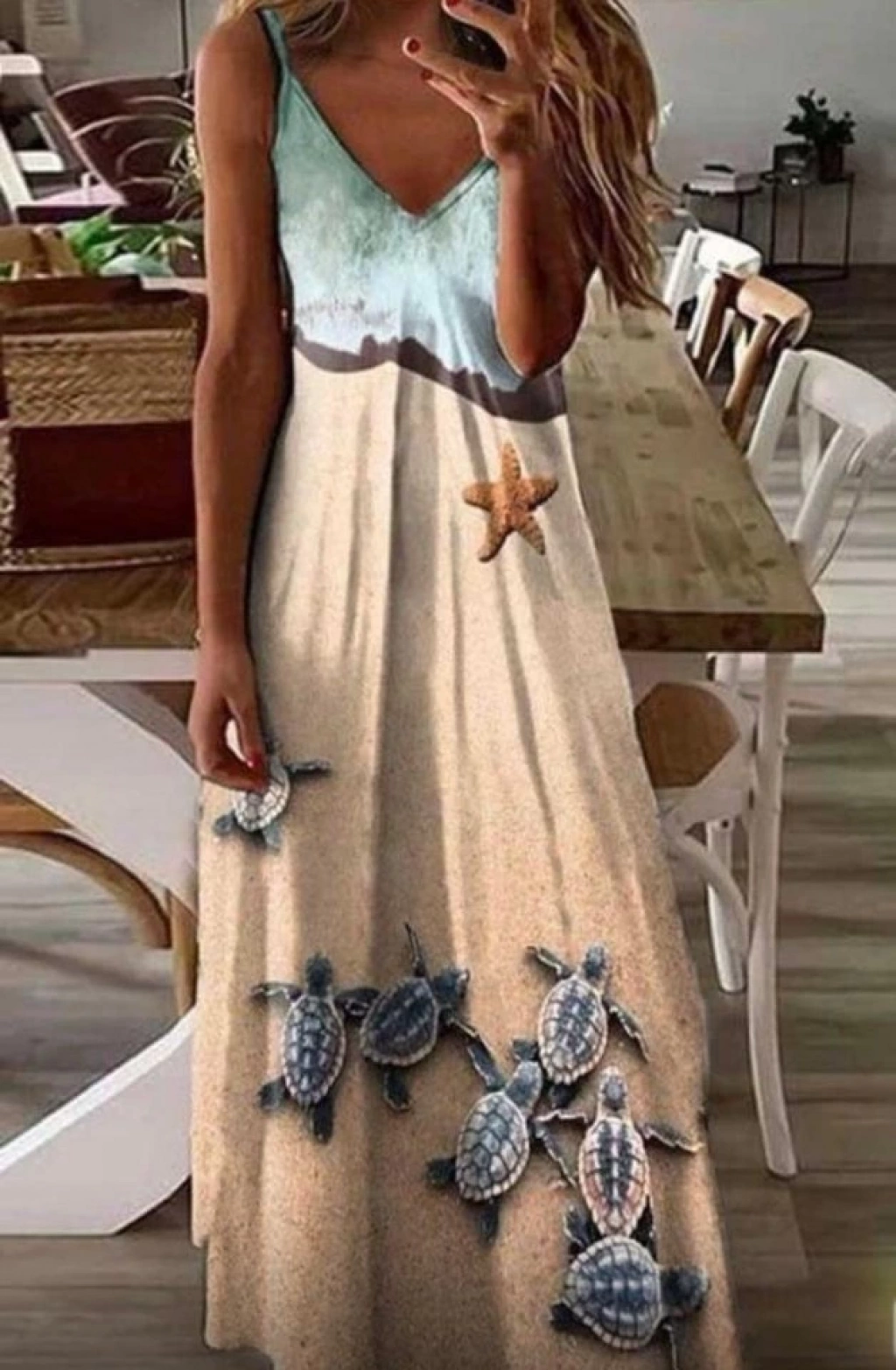 Kadın Süprem Kumaş Dijital Baskılı Askılı Elbise