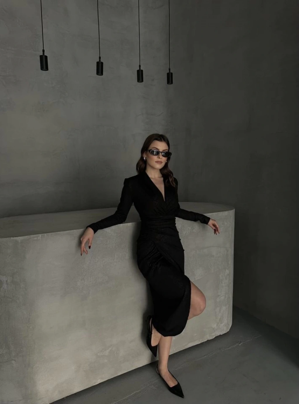 Drape Detaylı Midi Elbise