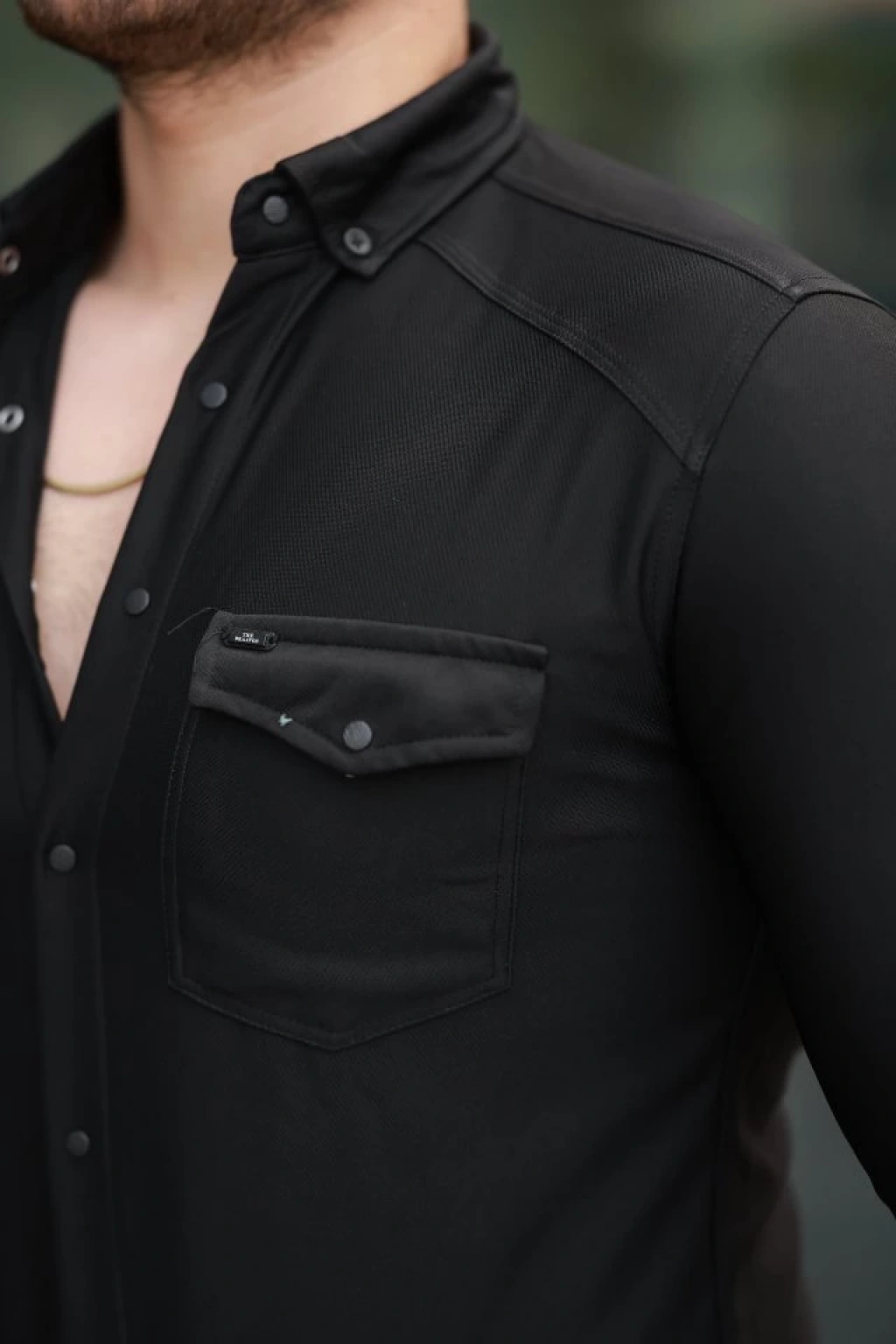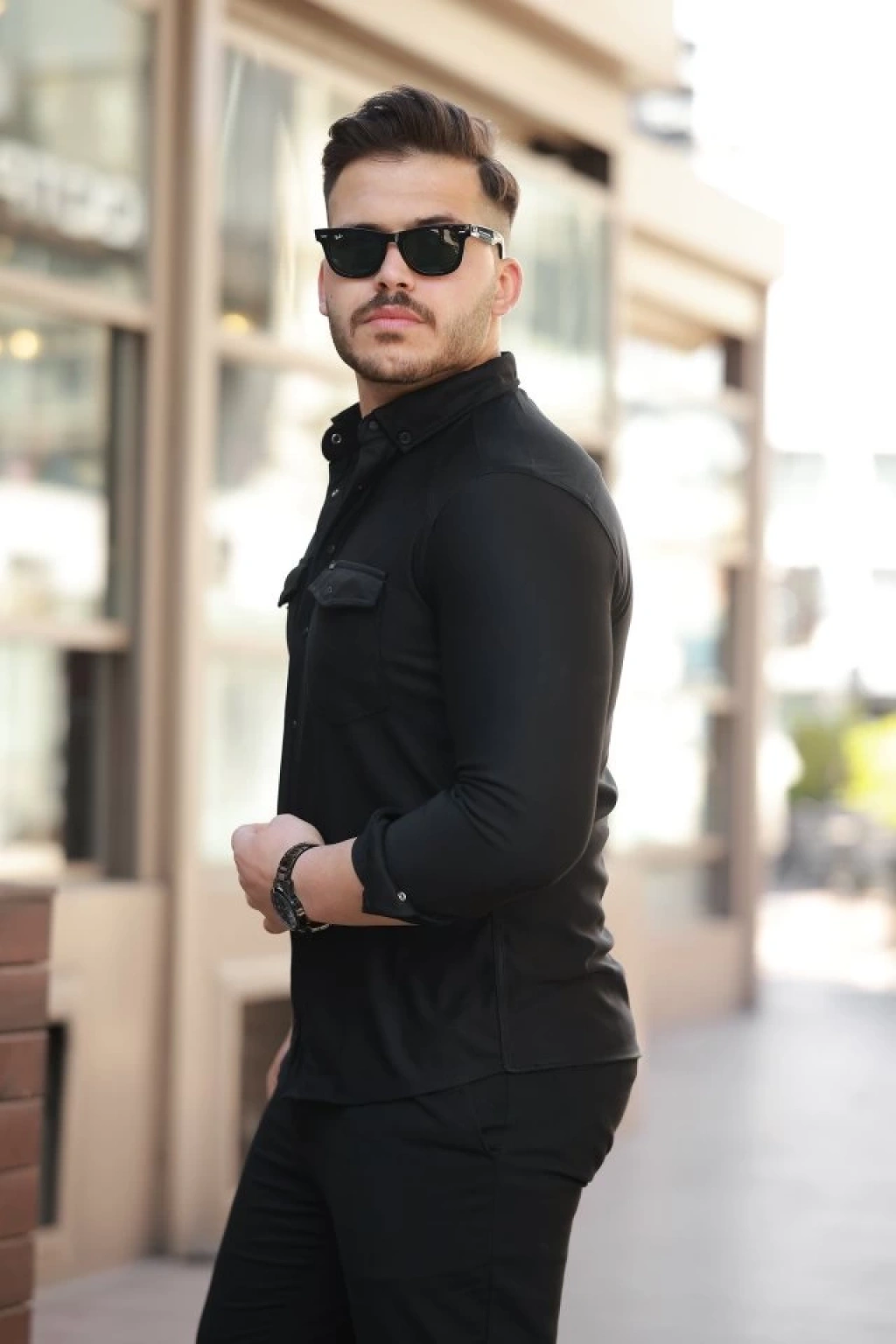 Erkek çift Cepli çıtçıt Düğmeli Uzun Kollu Gömlek