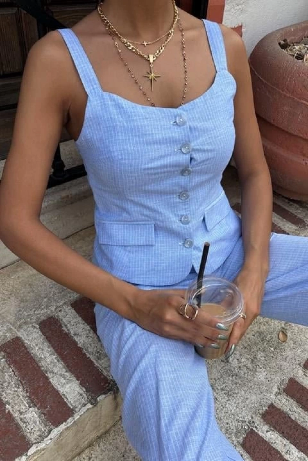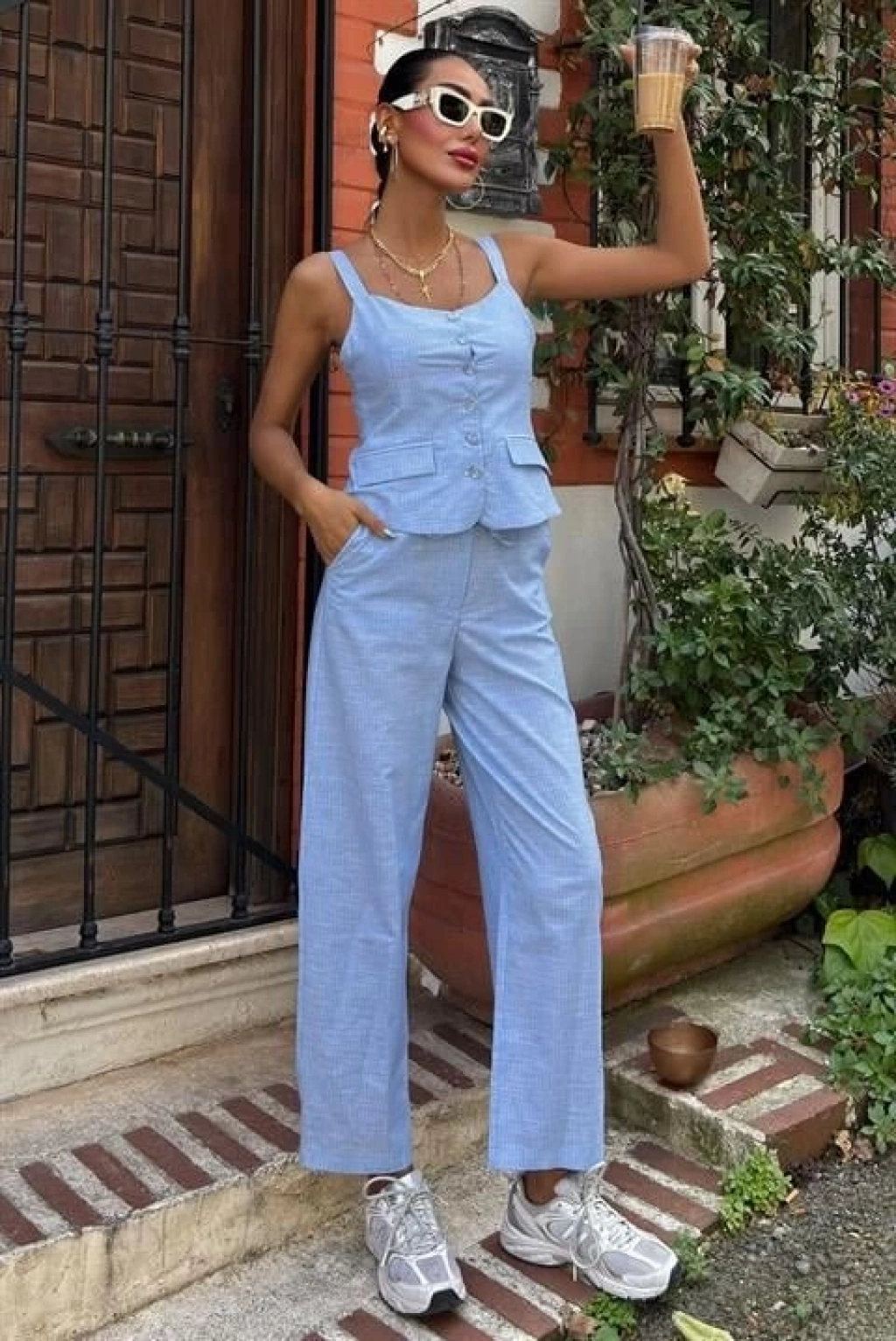 Kalın Askılı Bluz Pantolon Keten Takım 10187