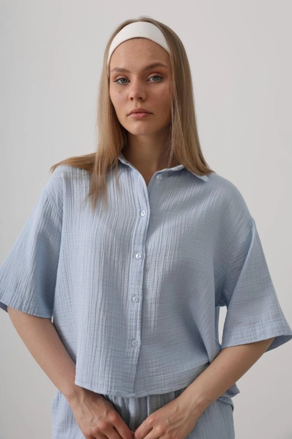 Yarım Kol Müslin Gömlek - Bebe Mavisi