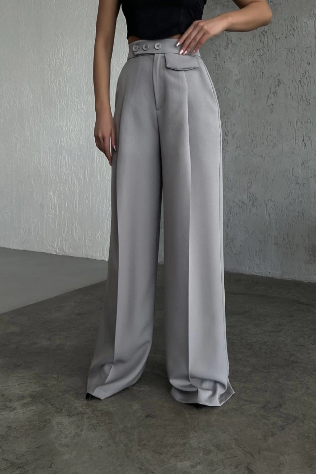 Üç Düğme Detayli Palazzo Pantolon