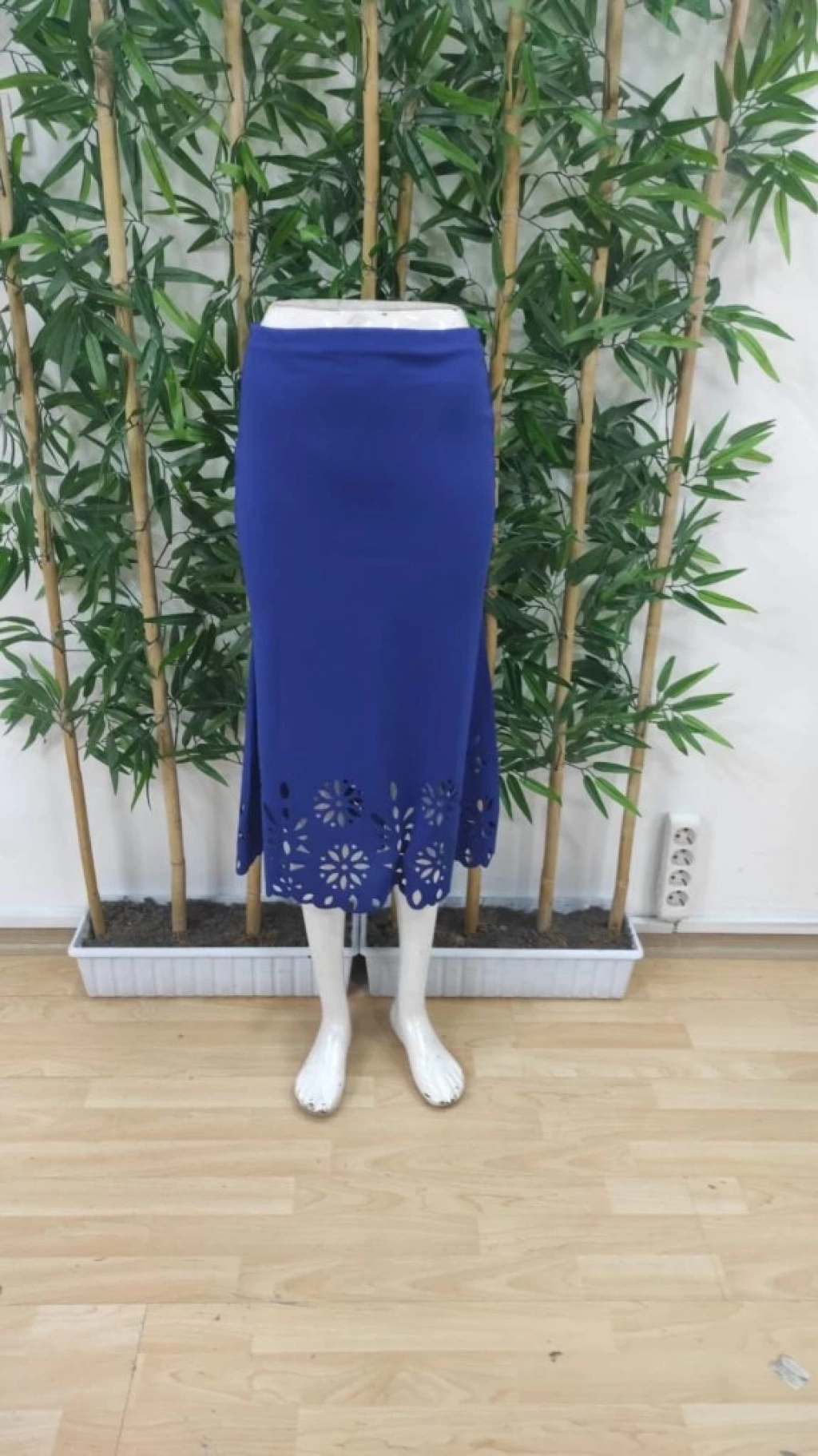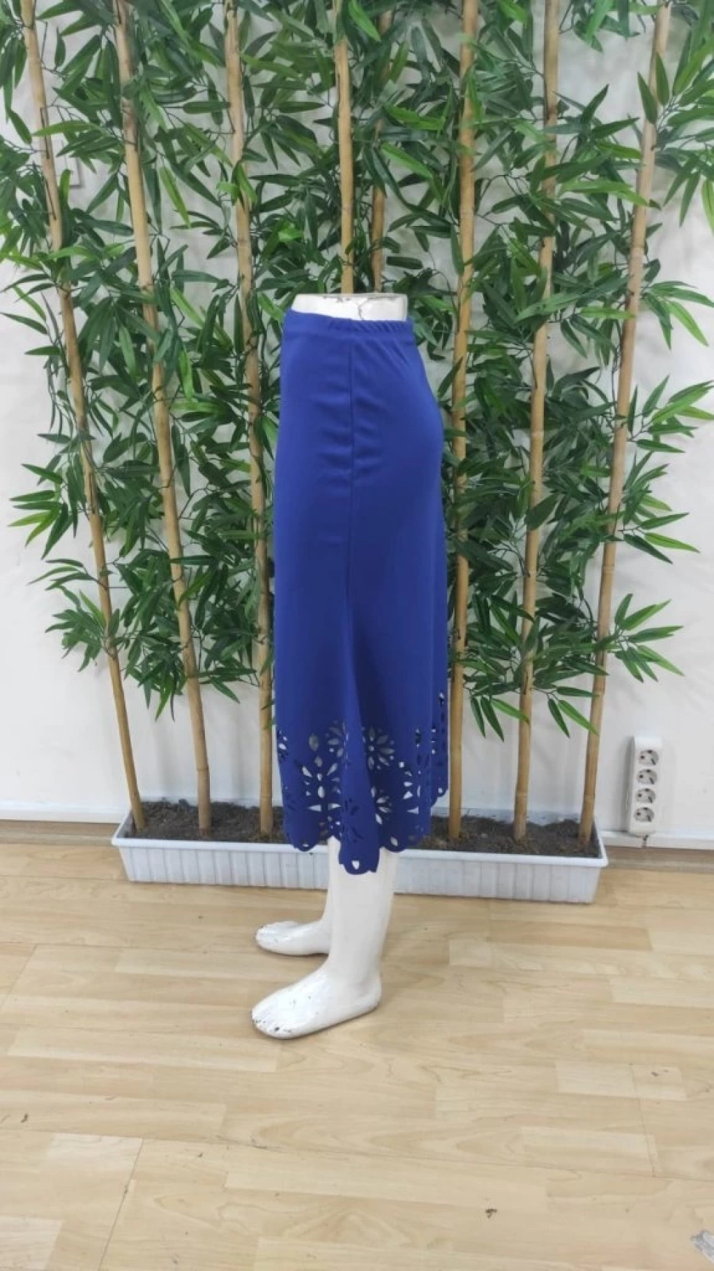 Kadın Yüksek Bel Lazer Kesim Detaylı Midi Ithal Krep Etek