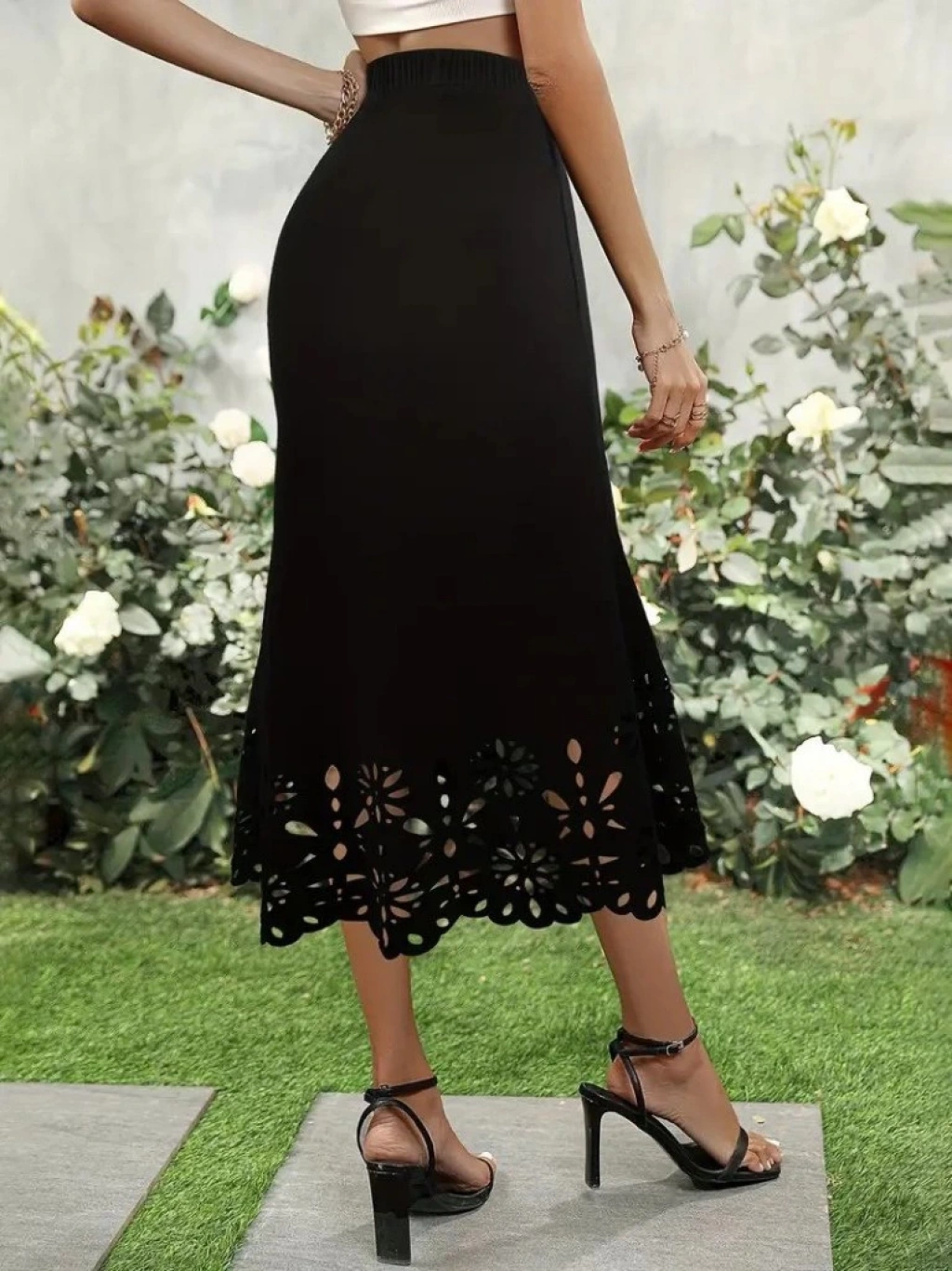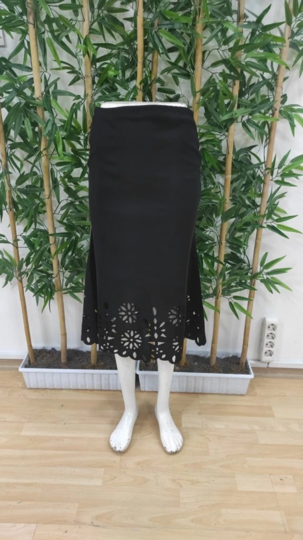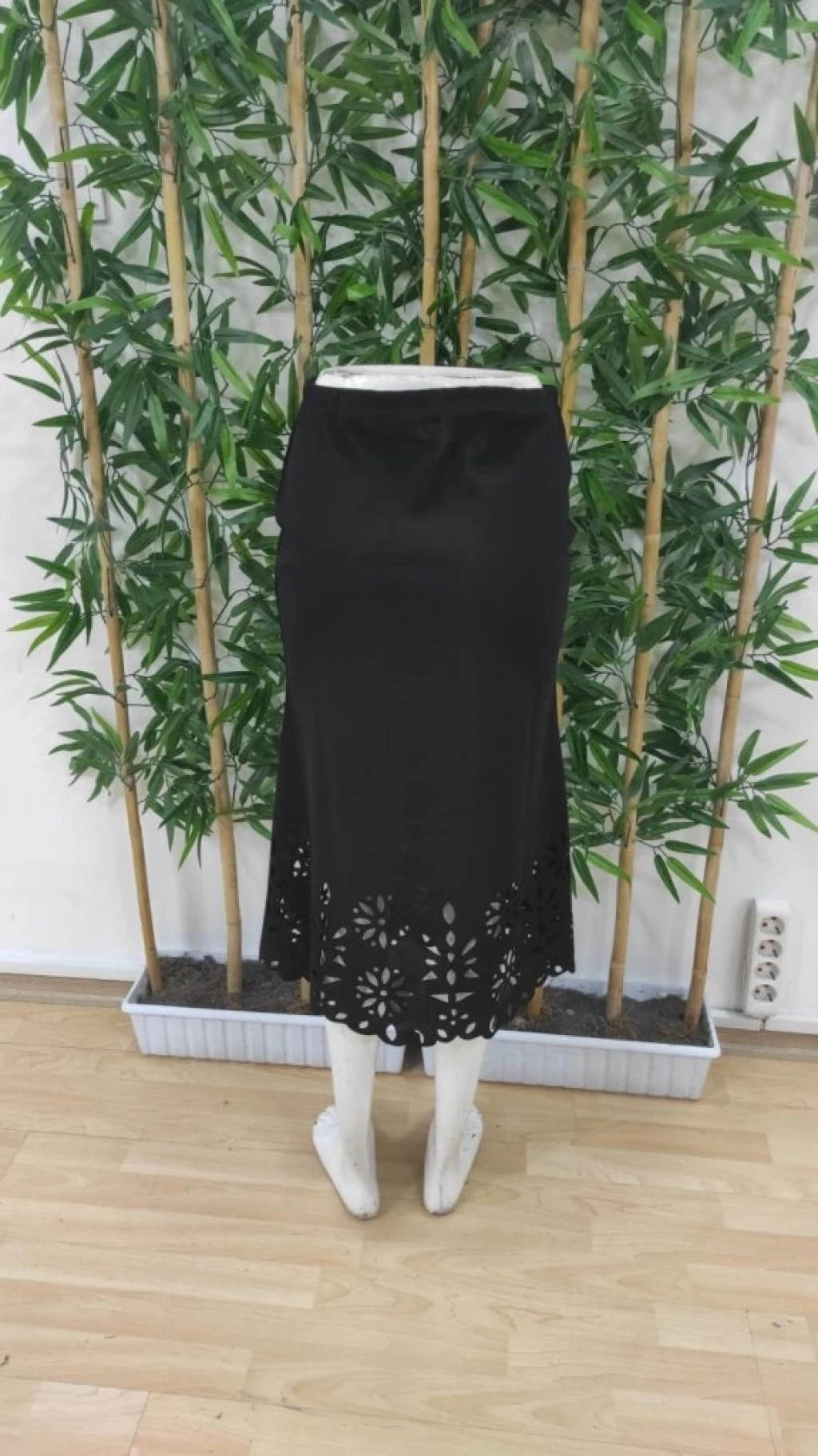 Kadın Yüksek Bel Lazer Kesim Detaylı Midi Ithal Krep Etek