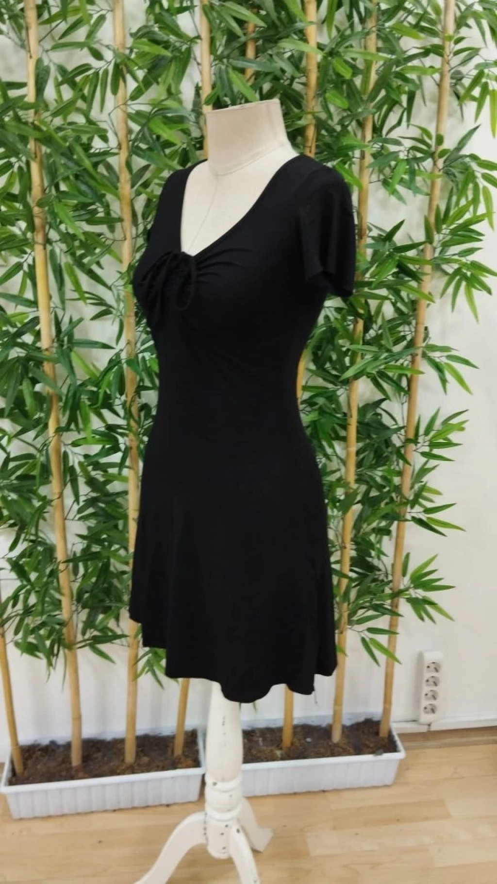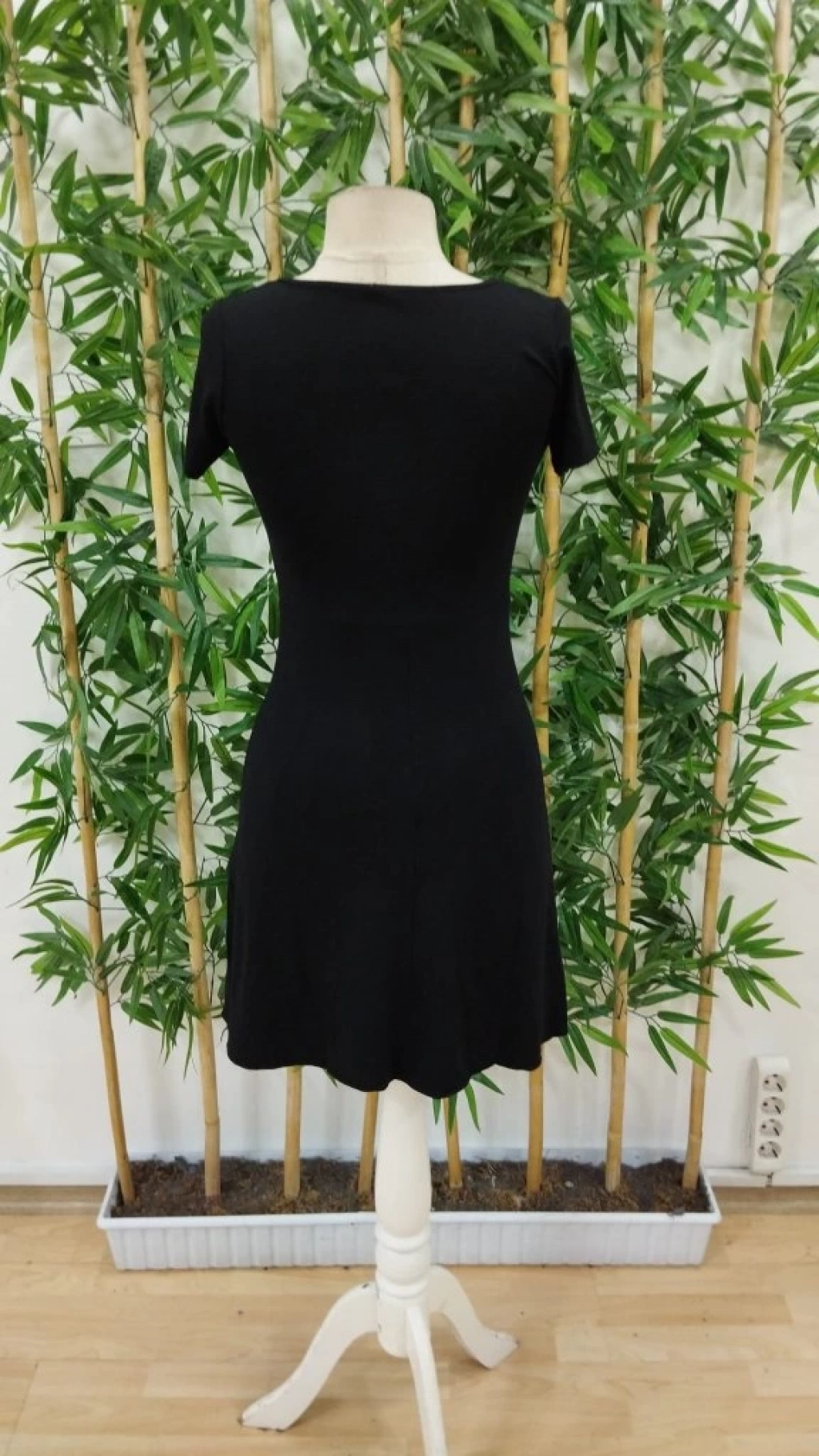 Kadın Kısa Kollu Derin Büzgülü V Yakalı Viskon Elbise