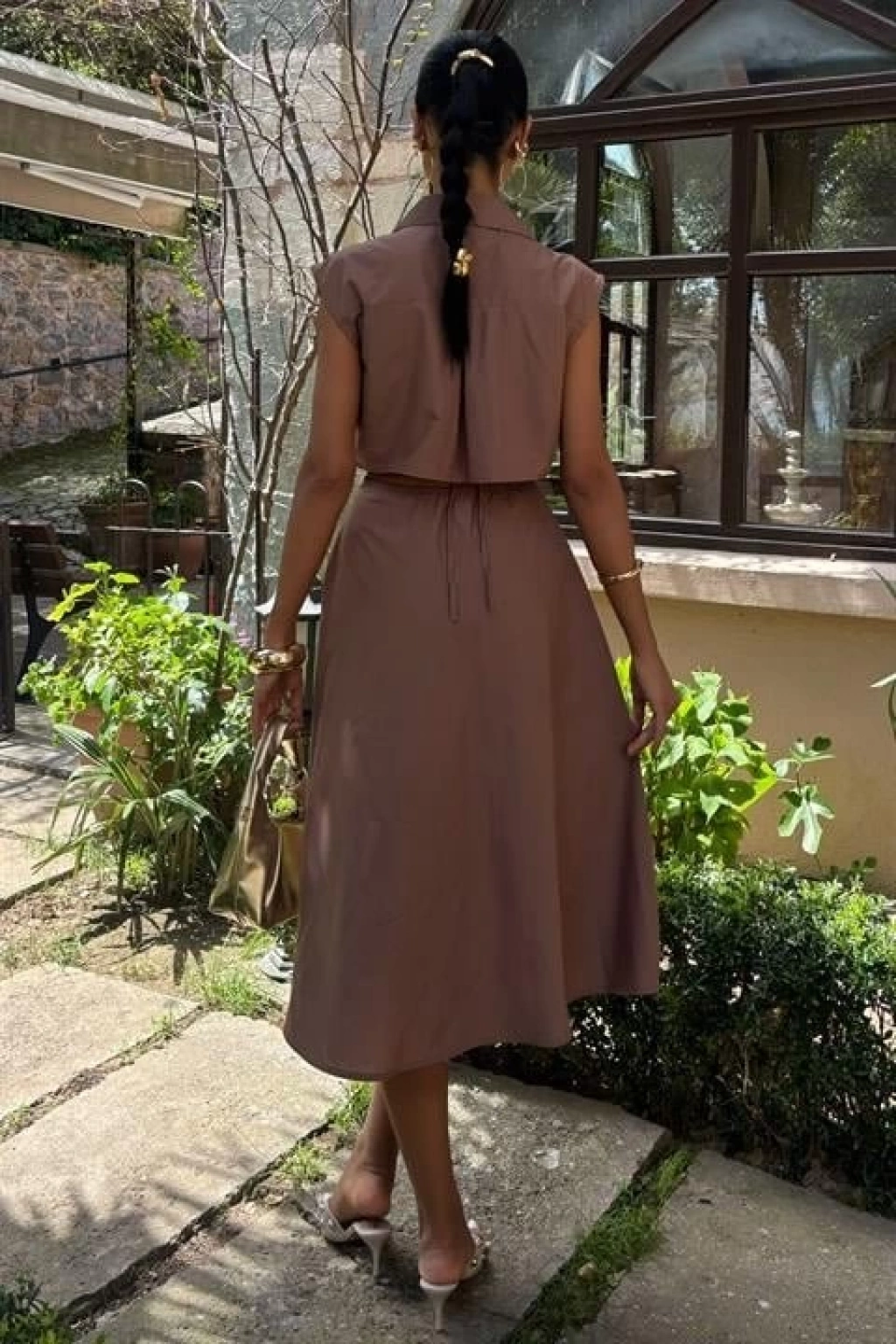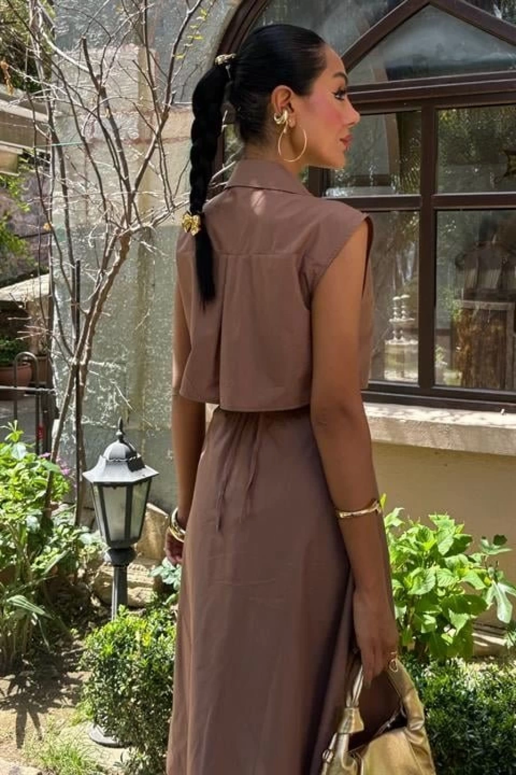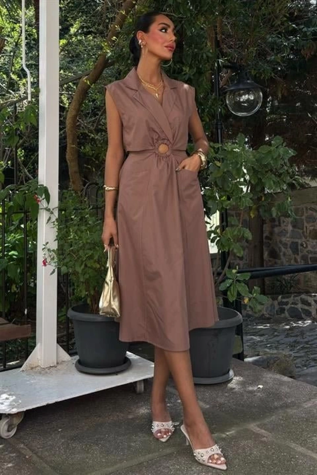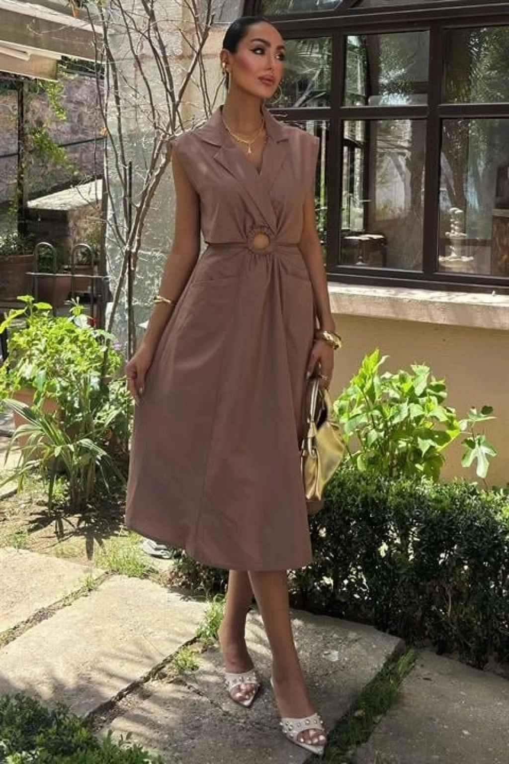 Göbeği Halka Detaylı Midi Boy Elbise 2896