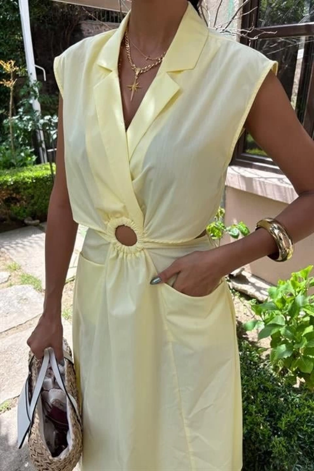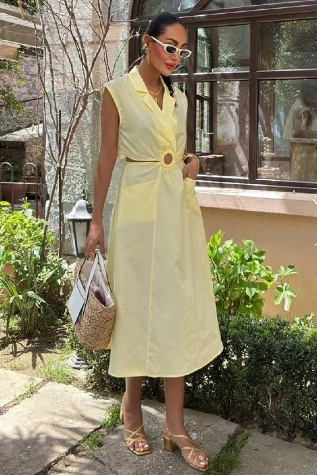 Göbeği Halka Detaylı Midi Boy Elbise 2896