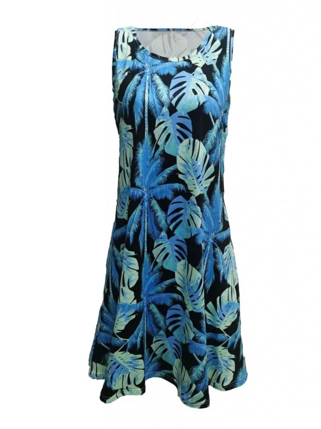 Kadın Mavi Yaprak Baskılı Askılı Süprem Elbise